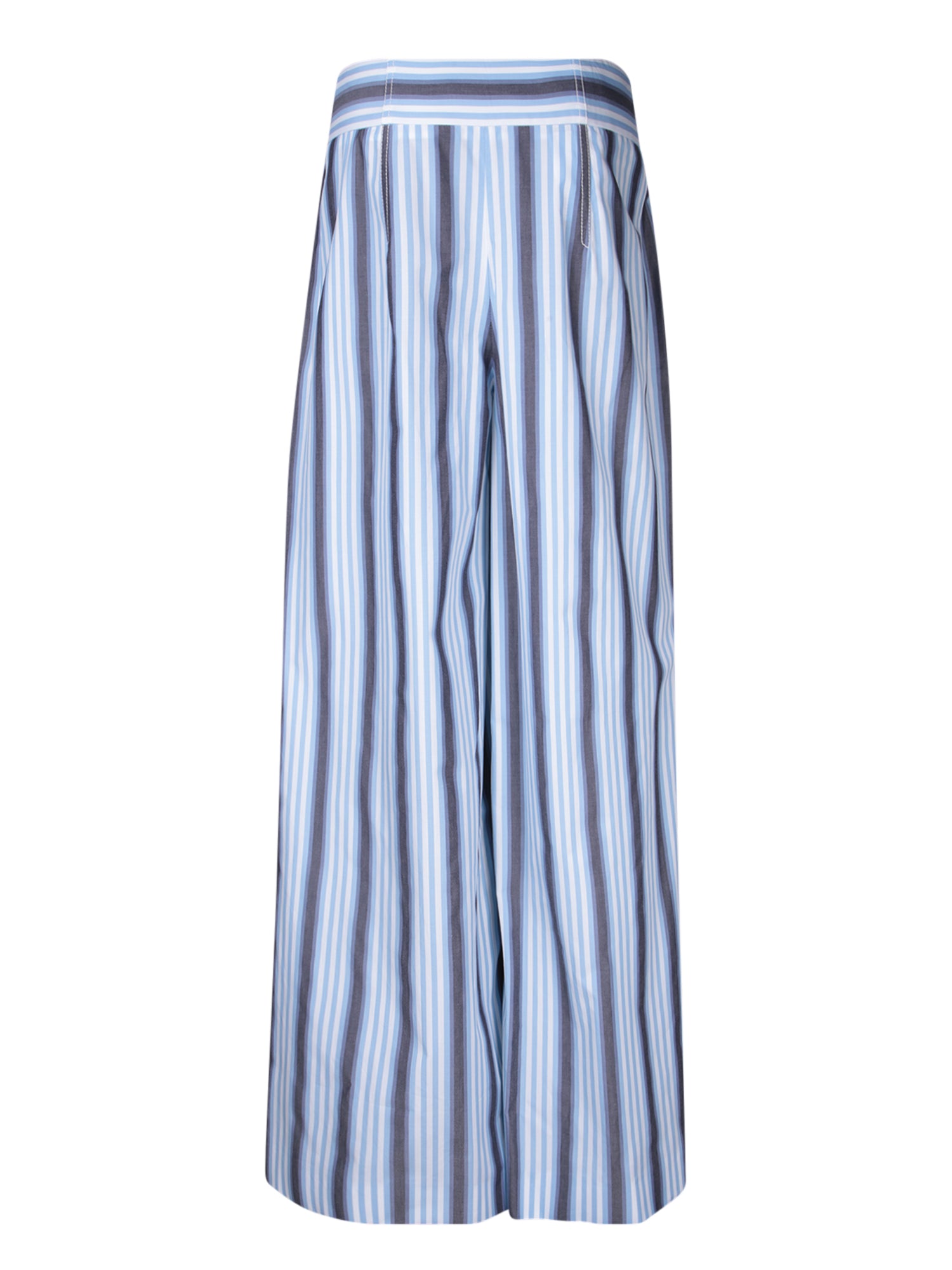 The flowing wide-cut of these Trousers pairs perfectly with their vertical stripe pattern that elongates the figure. A sophisticated piece that flawlessly merges comfort and style.