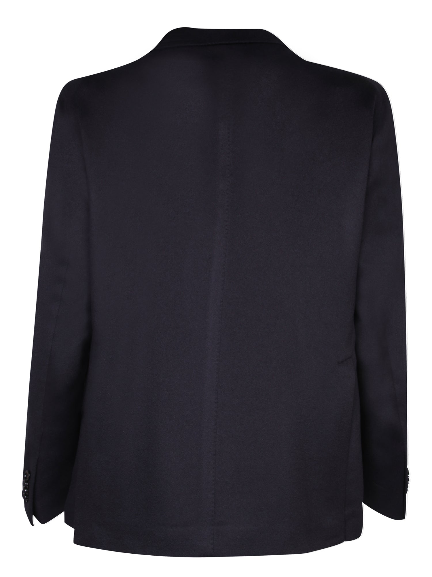 Single-breasted cashmere jacket in blue. Understated design featuring a classic lapel, welt pockets, and a two-button closure.
