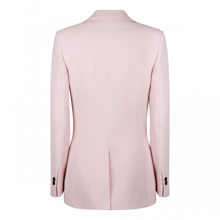 Pink wool tailored blazer from Burberry featuring slim fit, single-breasted design, structured shape, button fastening, notch lapels, chest welt pocket, jet pockets, back single vent and padded shoulder?s.