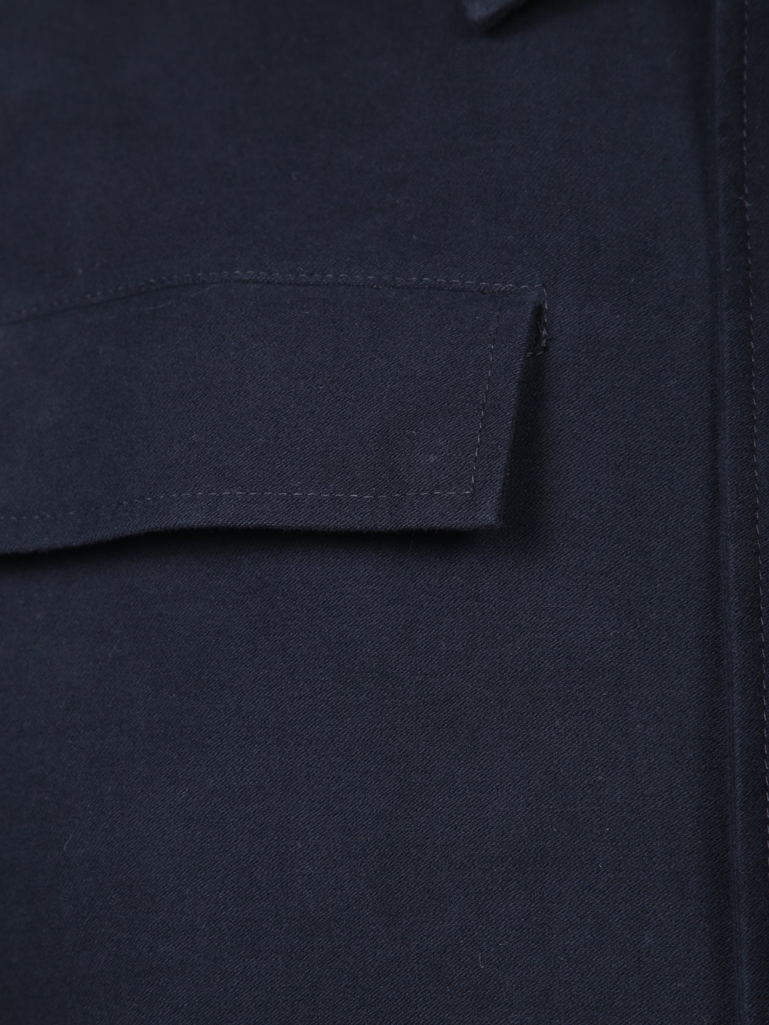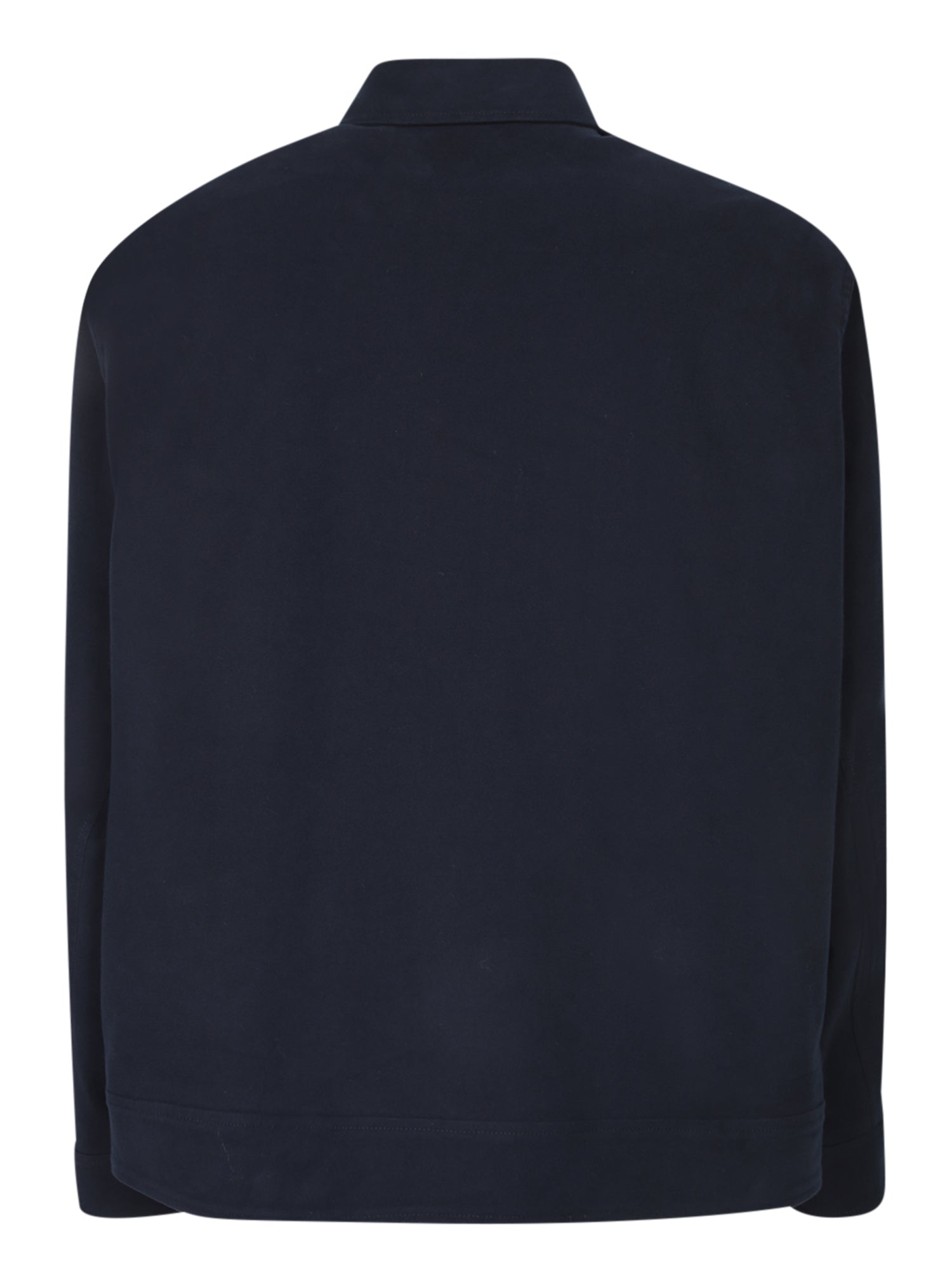 Blue cotton overshirt with button front closure. Features a classic collar and two flap pockets on the chest.