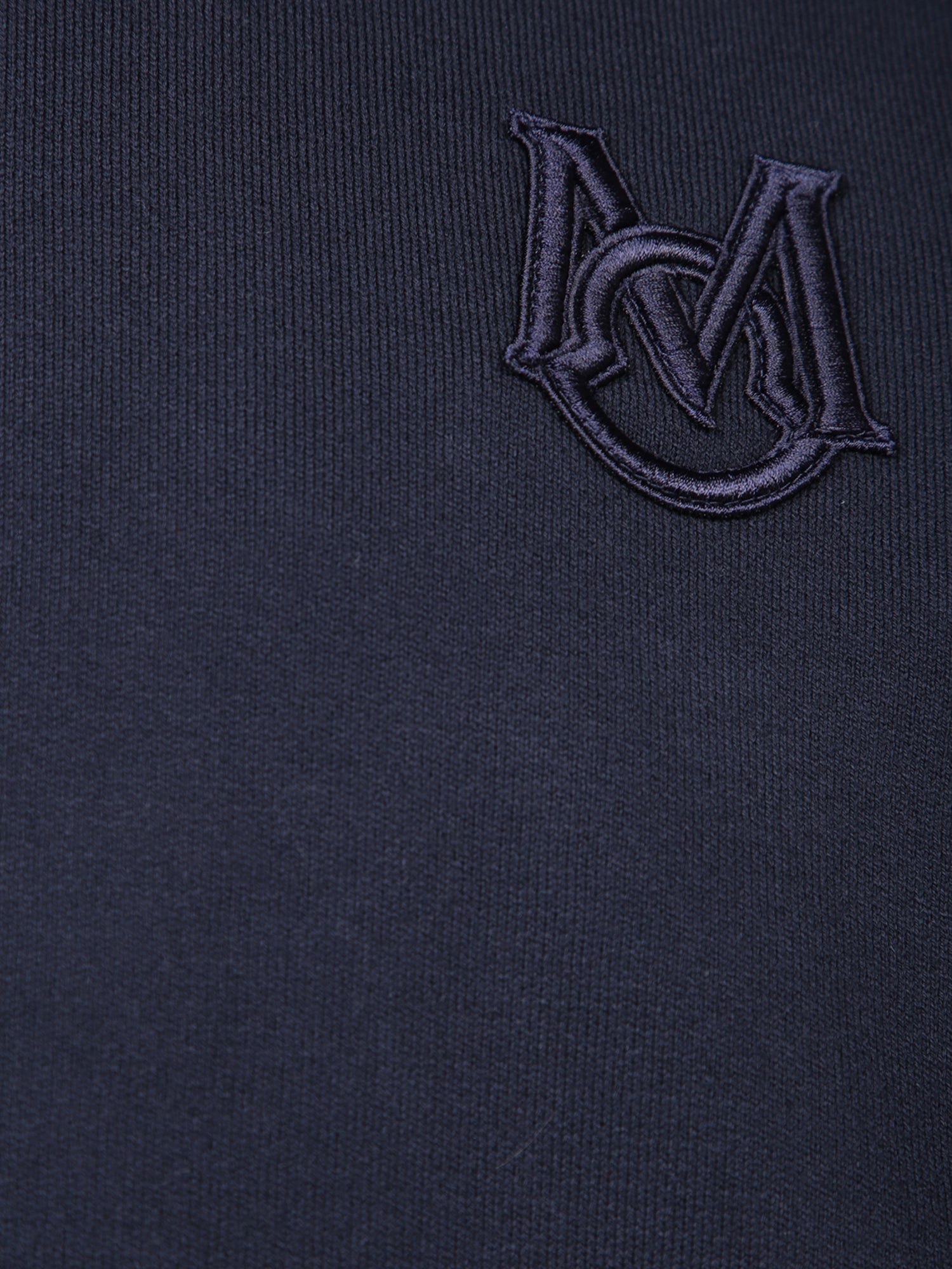 Long sleeve knit sweater with embroidered Moncler logo on the chest and logo patch on the sleeve.