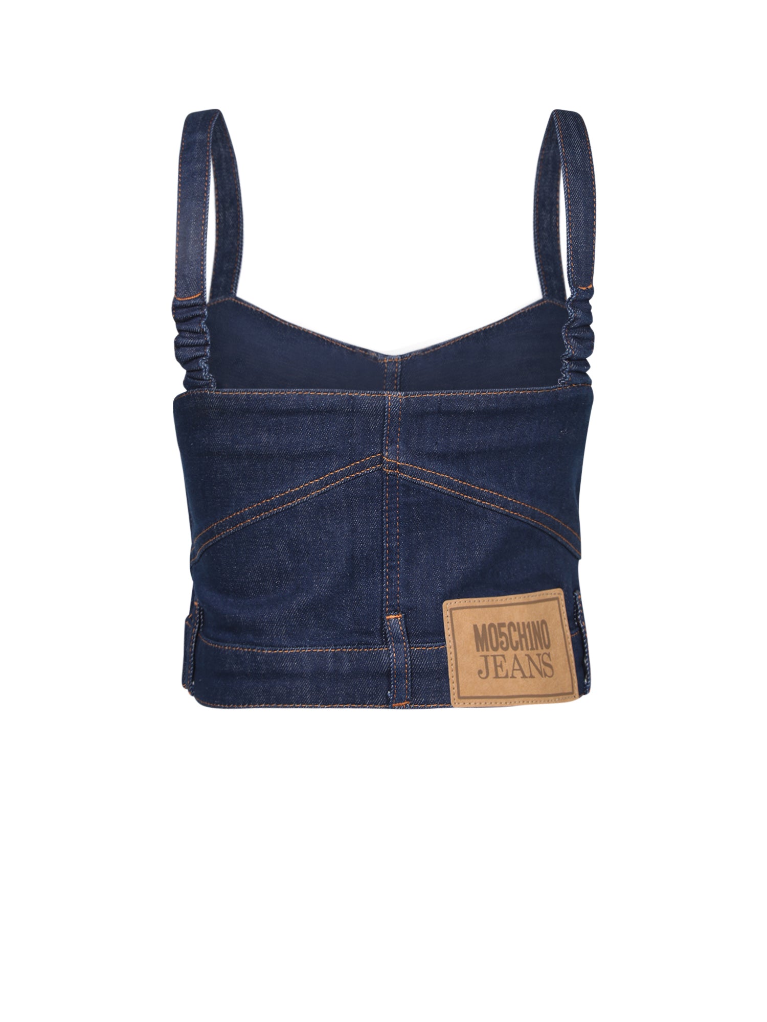 Sturdy denim. Sweetheart neckline. Adjustable straps. Back zip closure.