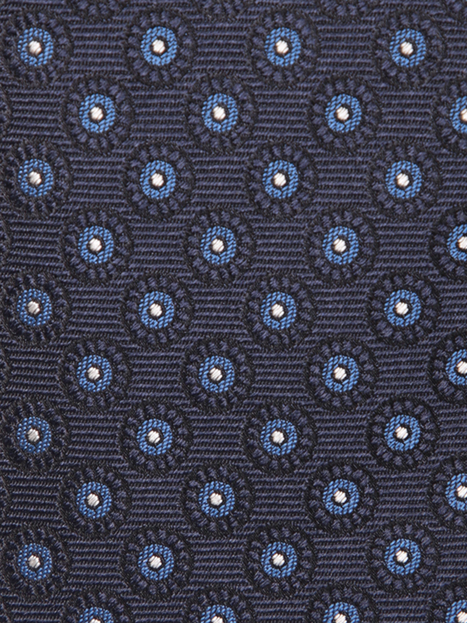 Dark blue silk tie with micro floral design, 8 cm wide.