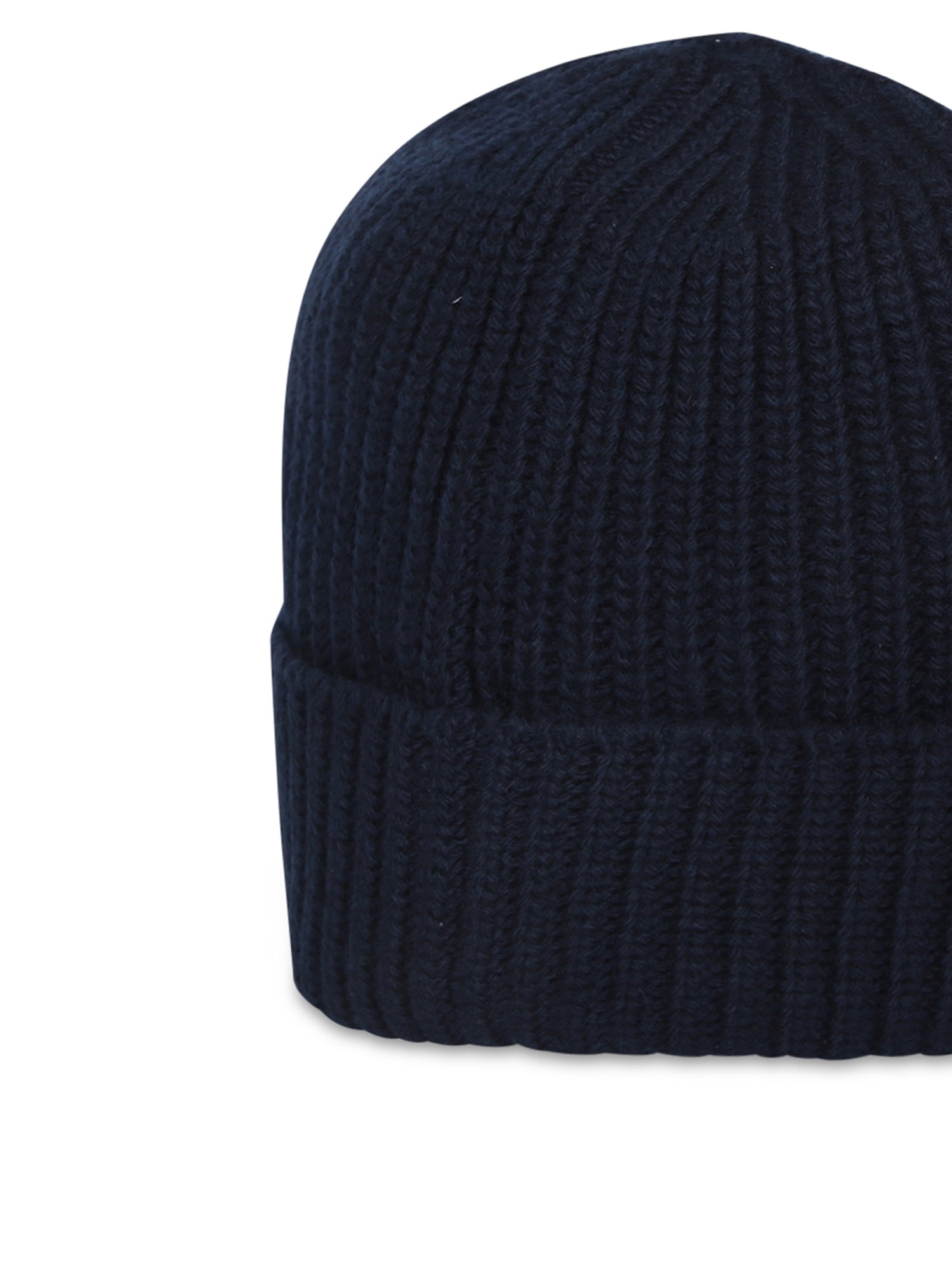 Ribbed knit beanie. Front Stone Island logo. Folded hem.