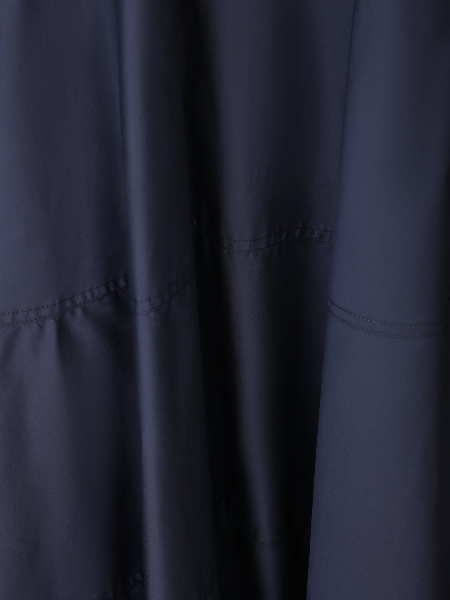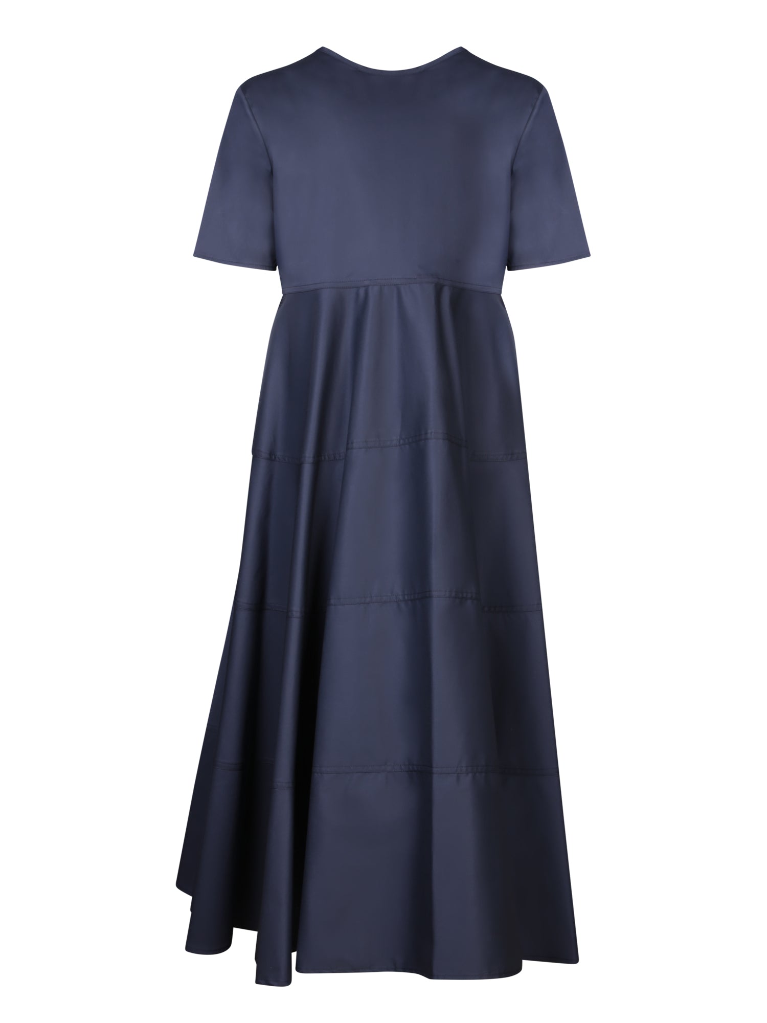Short-sleeve dress, panelled flare design, round neckline, midi length.