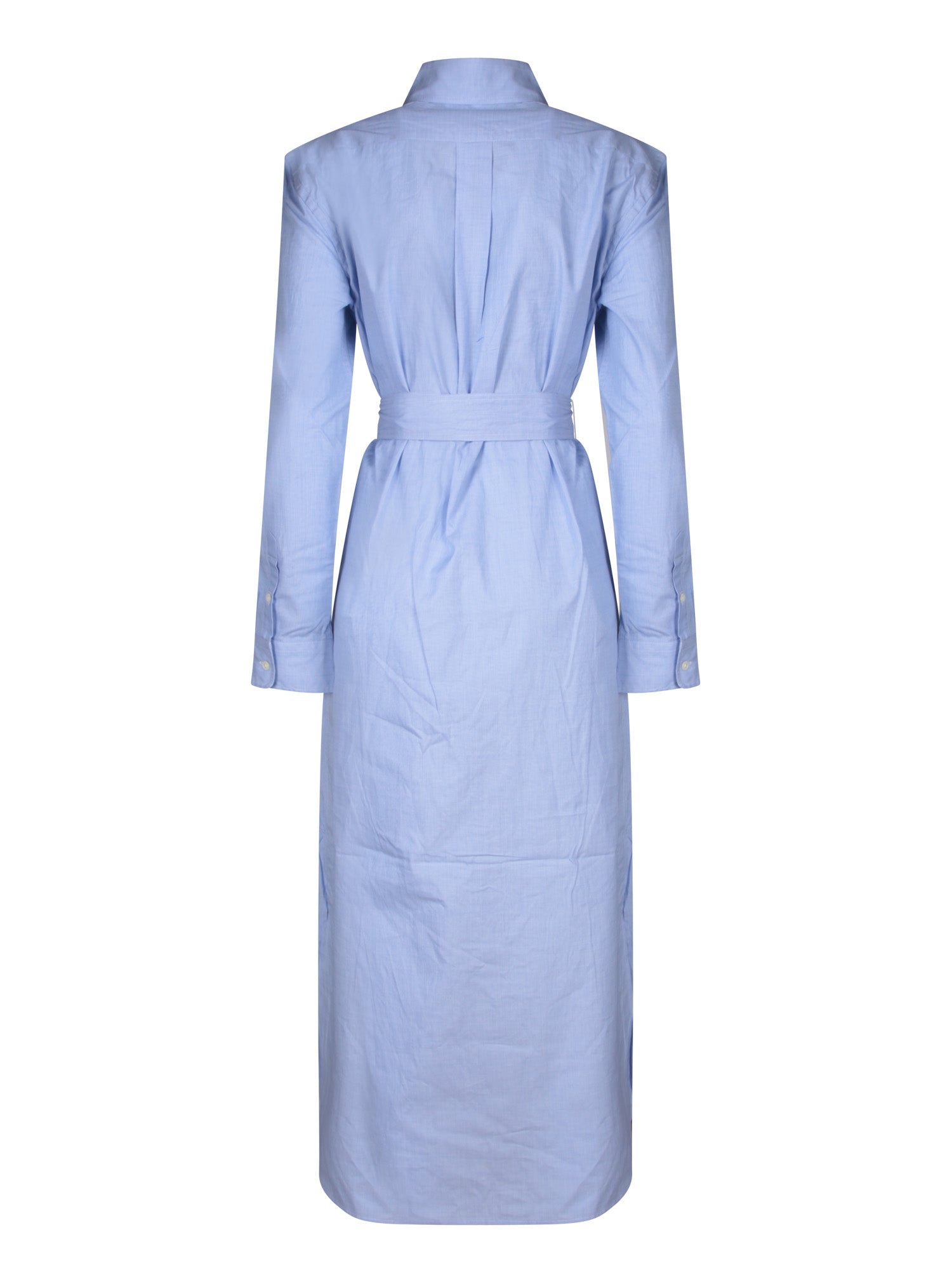 Long sleeves with buttoned cuffs. Adjustable belt with buckle. Front button closure.