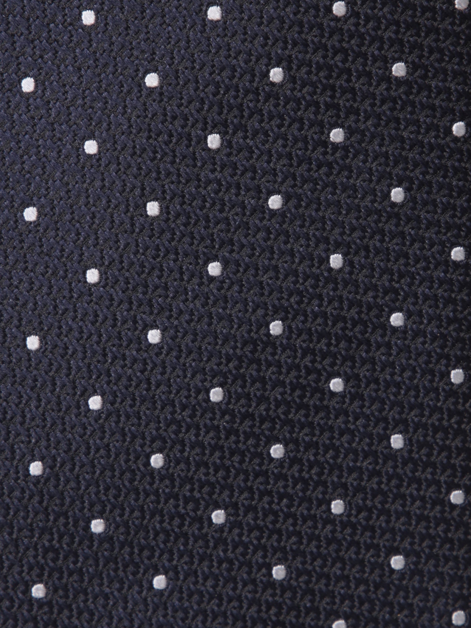 Pure silk tie with polka dot print. Width 8 cm. Glossy finish.