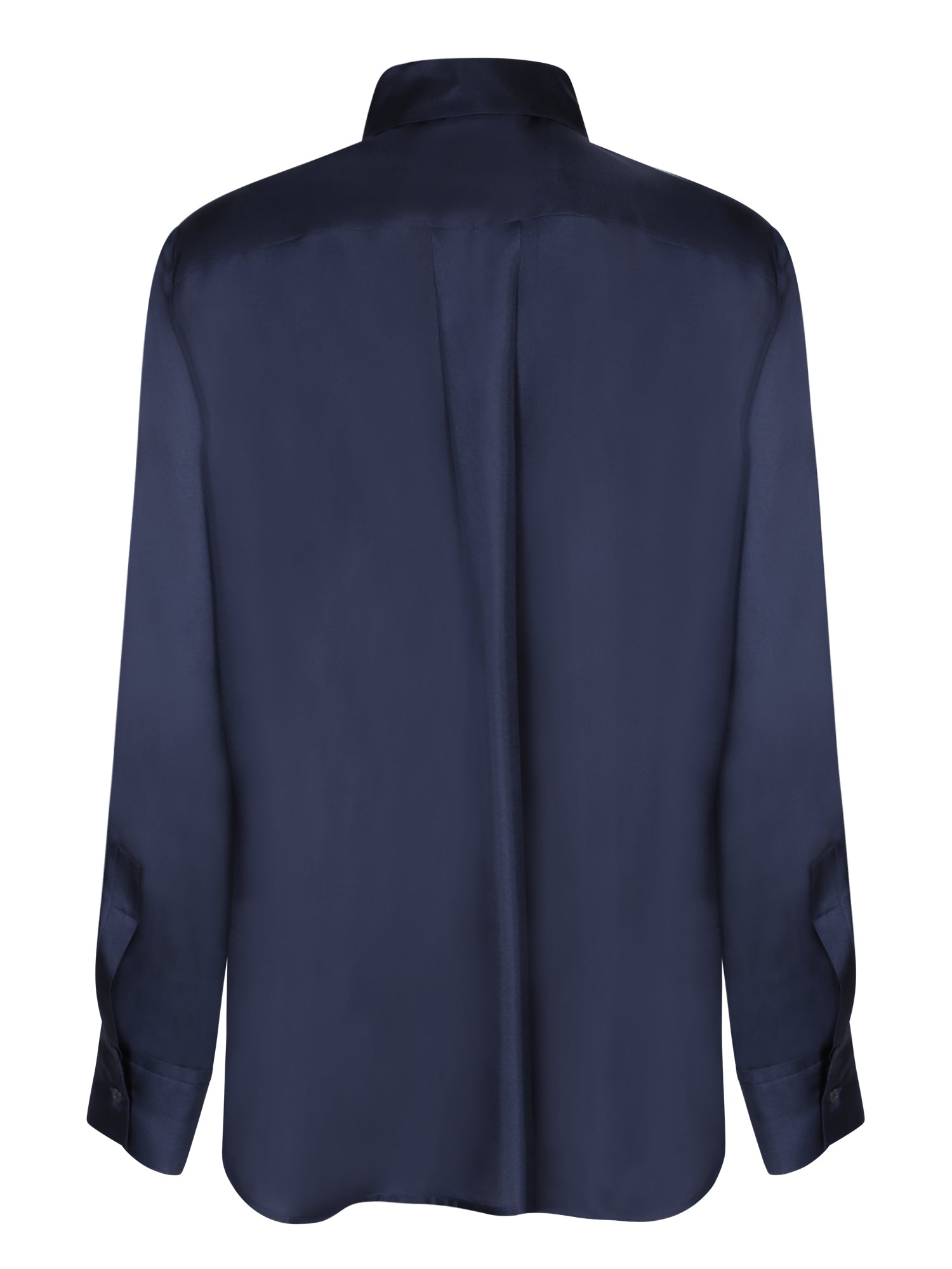 Long sleeves. Front button closure. Pointed collar.
