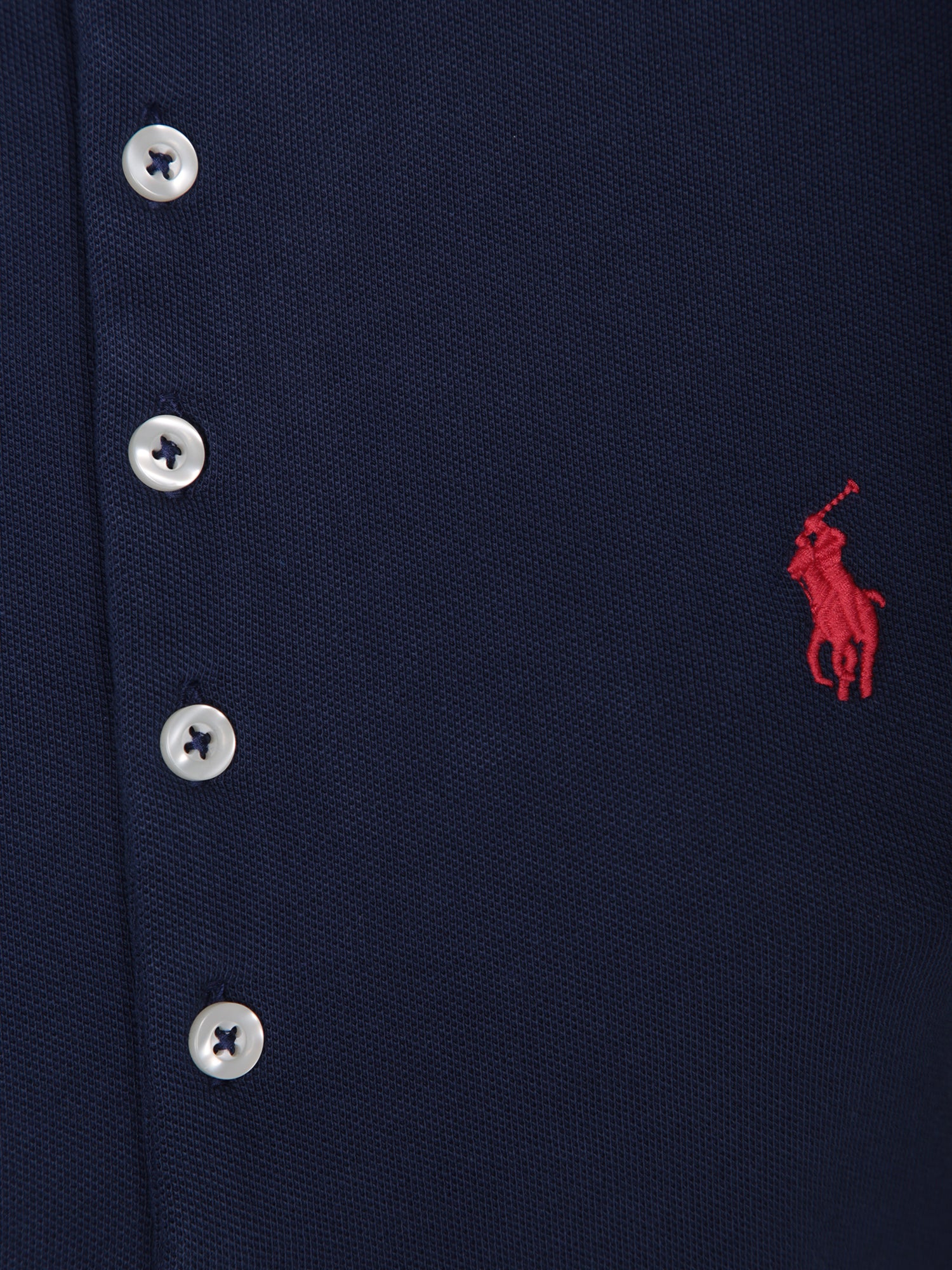 Short sleeves. Pique cotton fabric. Polo collar with button closure.