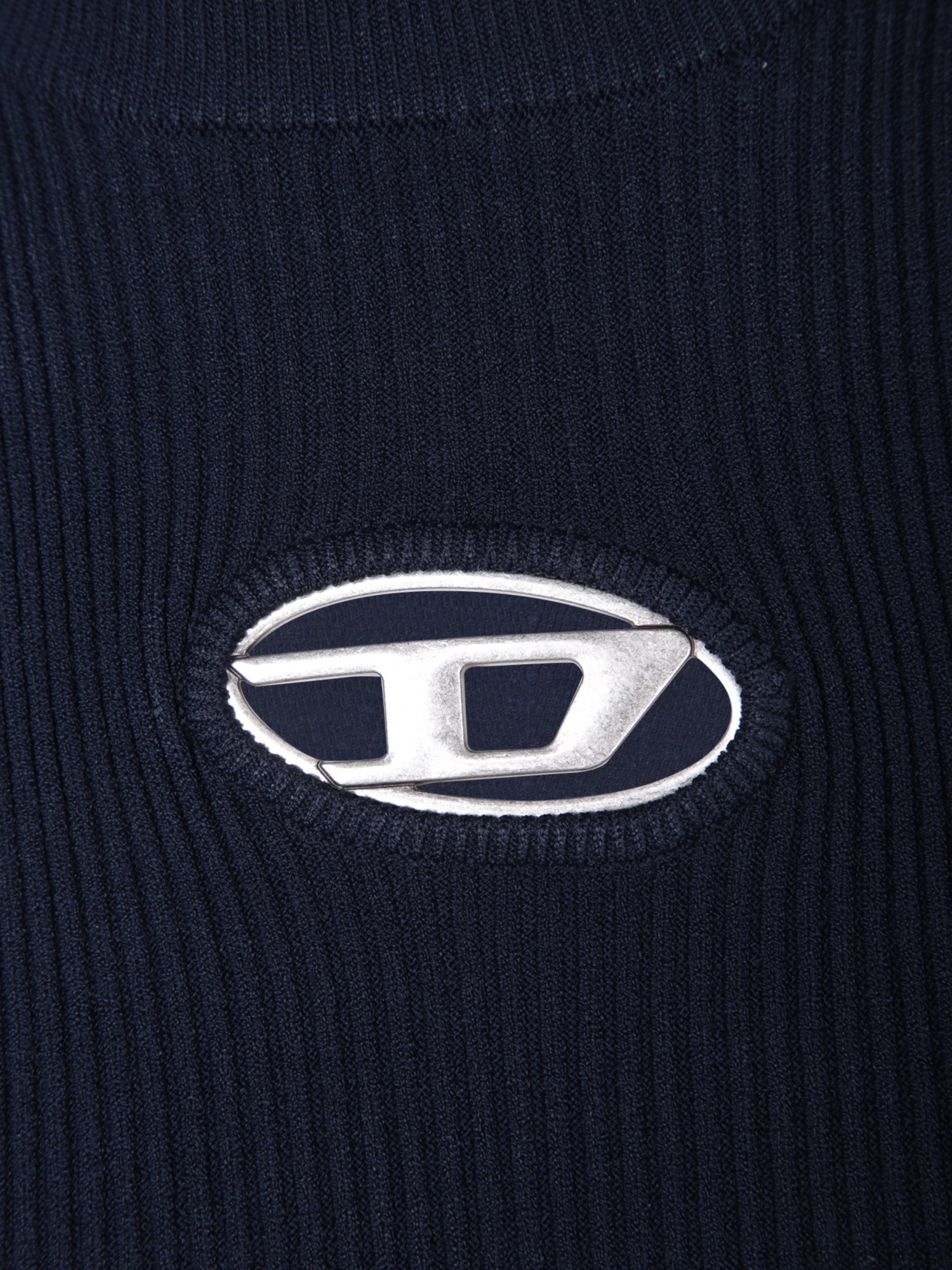 Sleeveless top. High round neckline. Ribbed knit fabric.