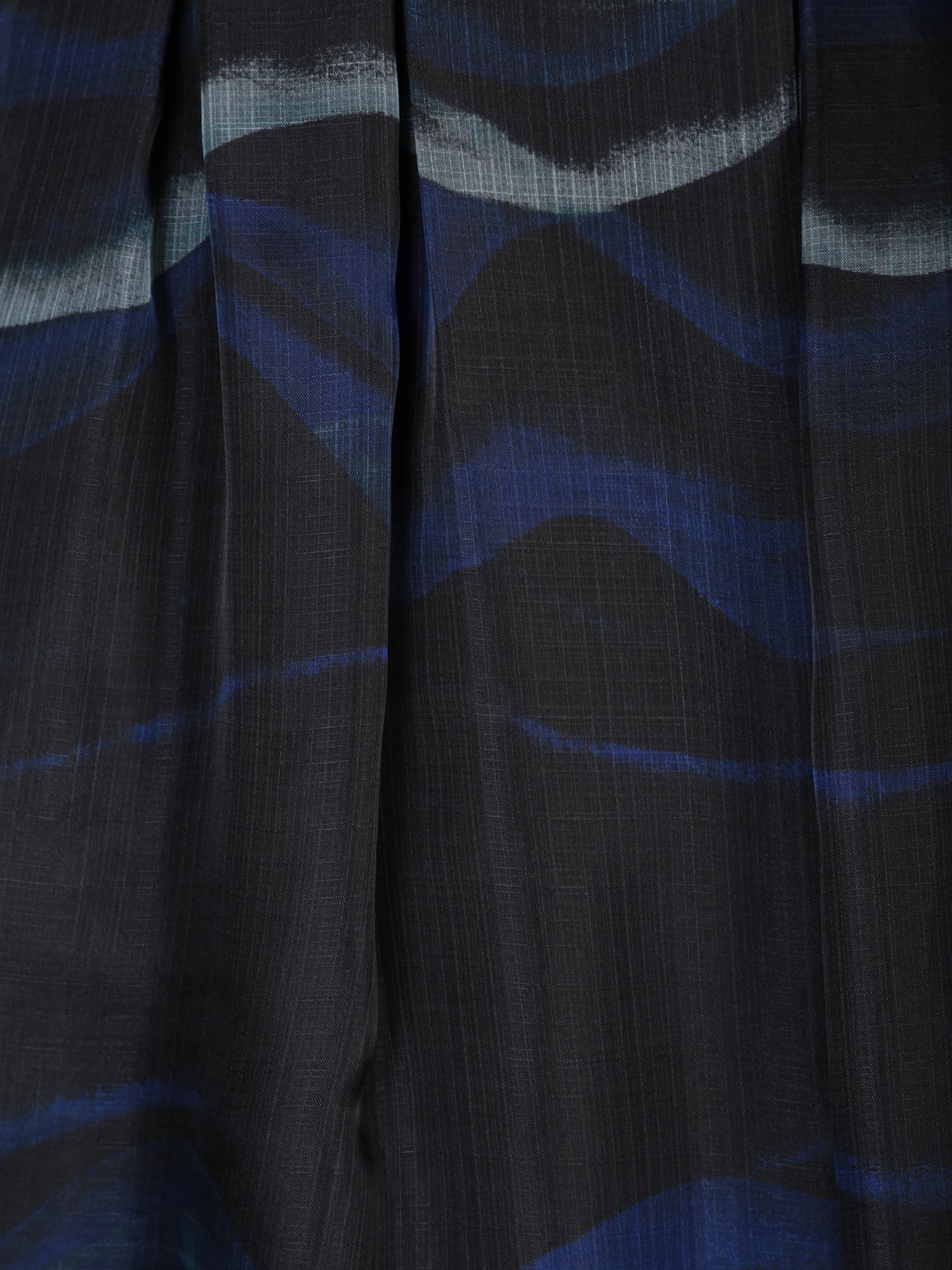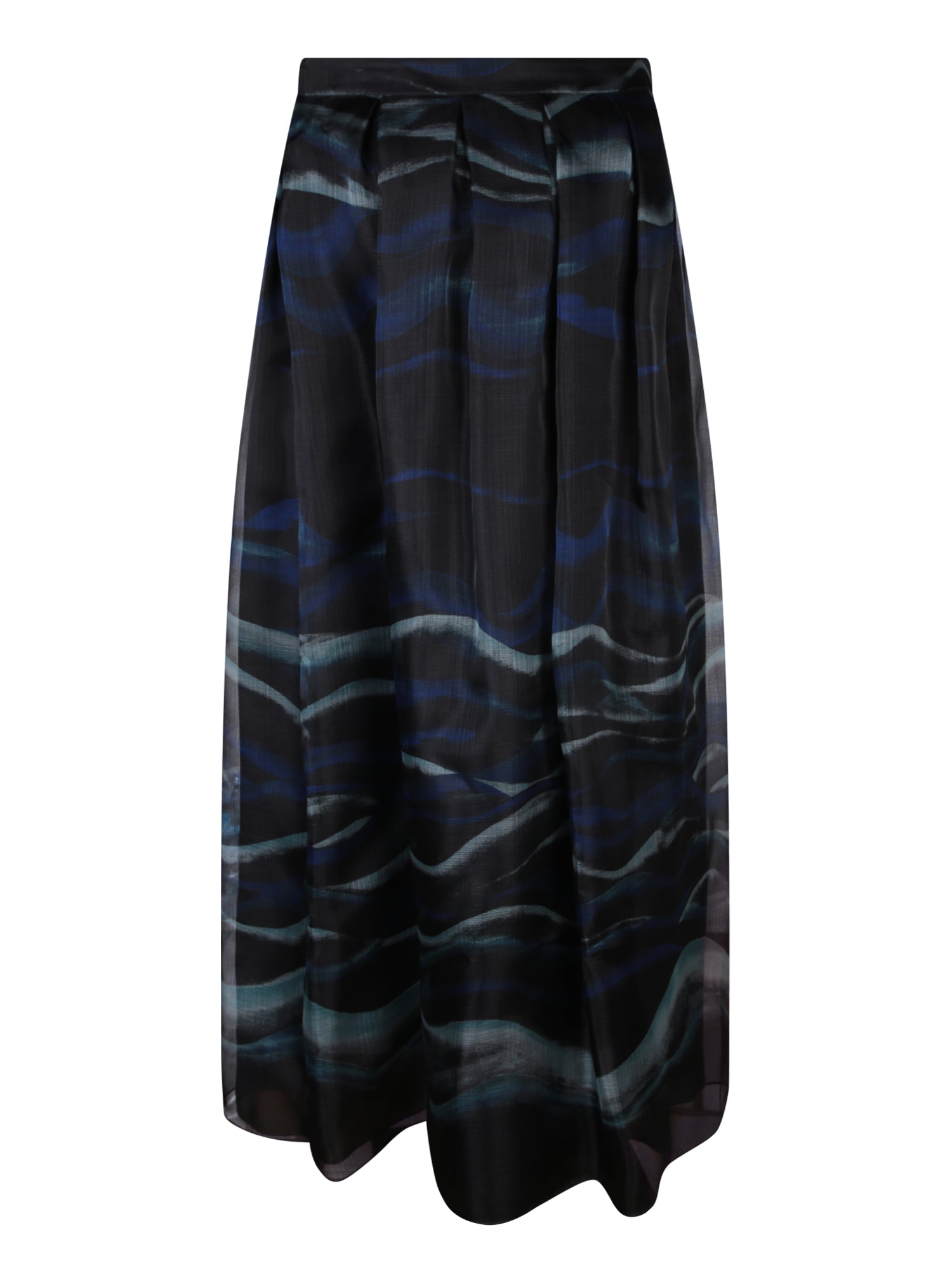 Midi skirt in sheer organza. Designed with blue wave print. Invisible side closure.