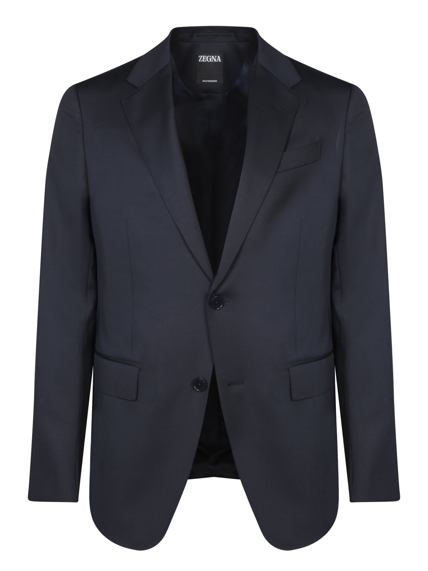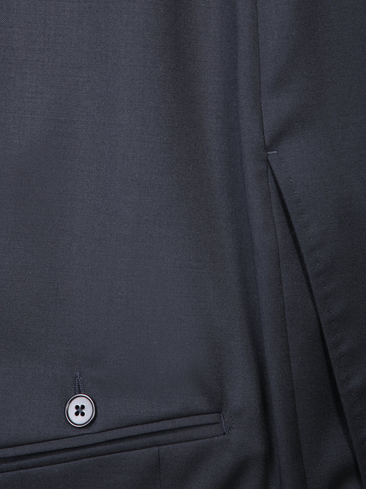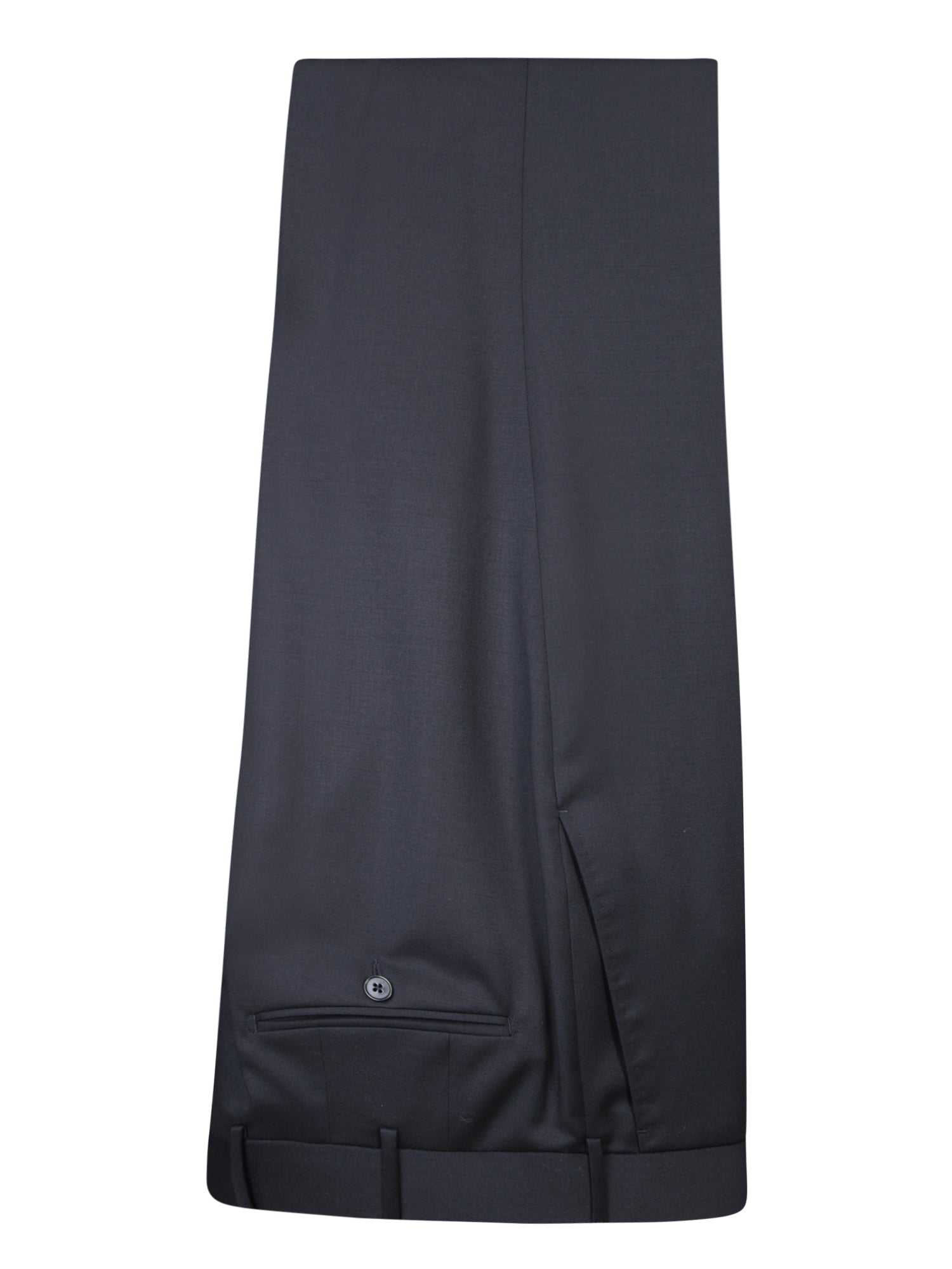 Wool suit with tailored fit. Button closure, welt pockets, and pleated trousers.