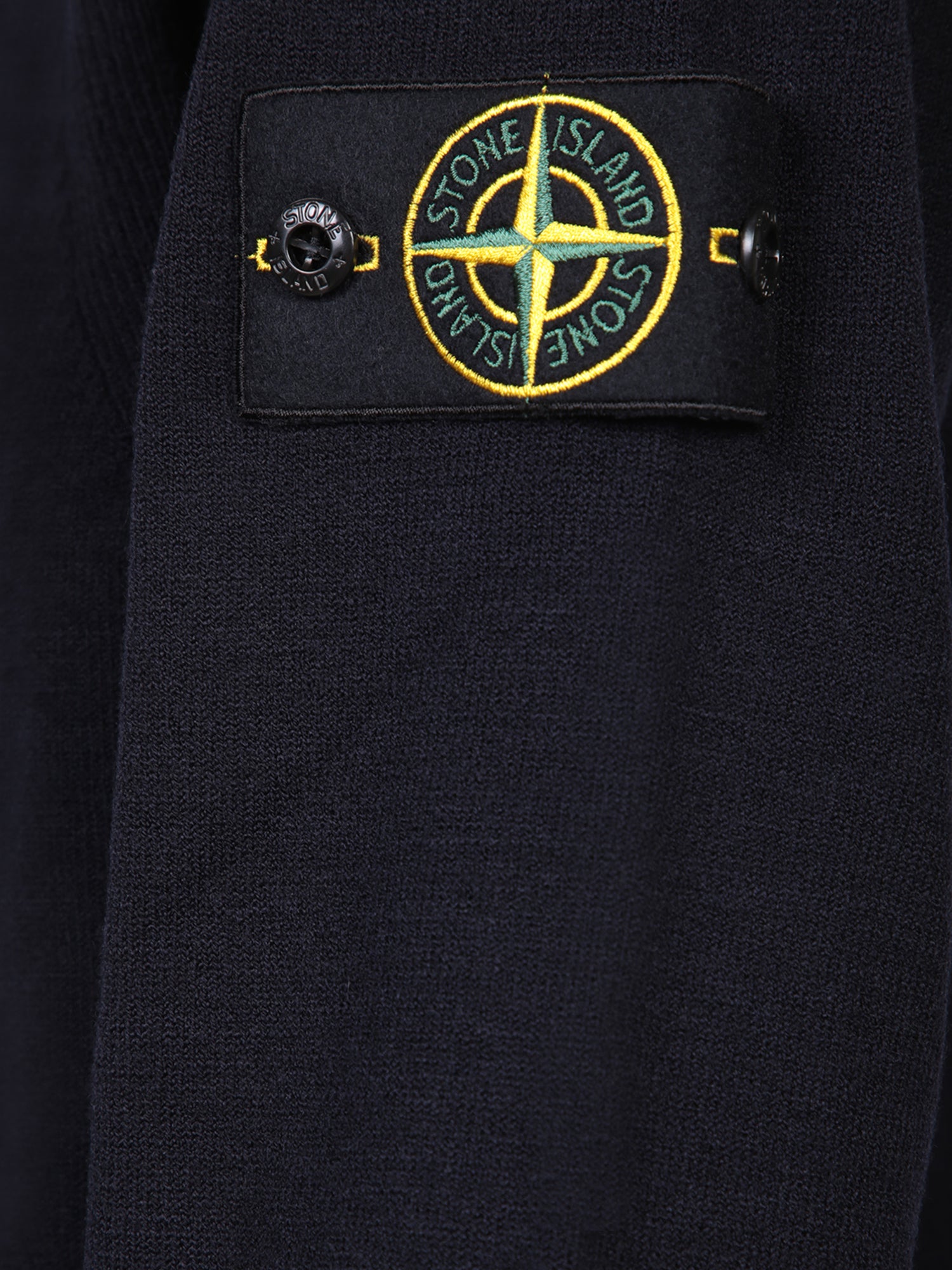 Long-sleeve, crewneck wool sweater. Distinctive Stone Island logo patch on the arm.