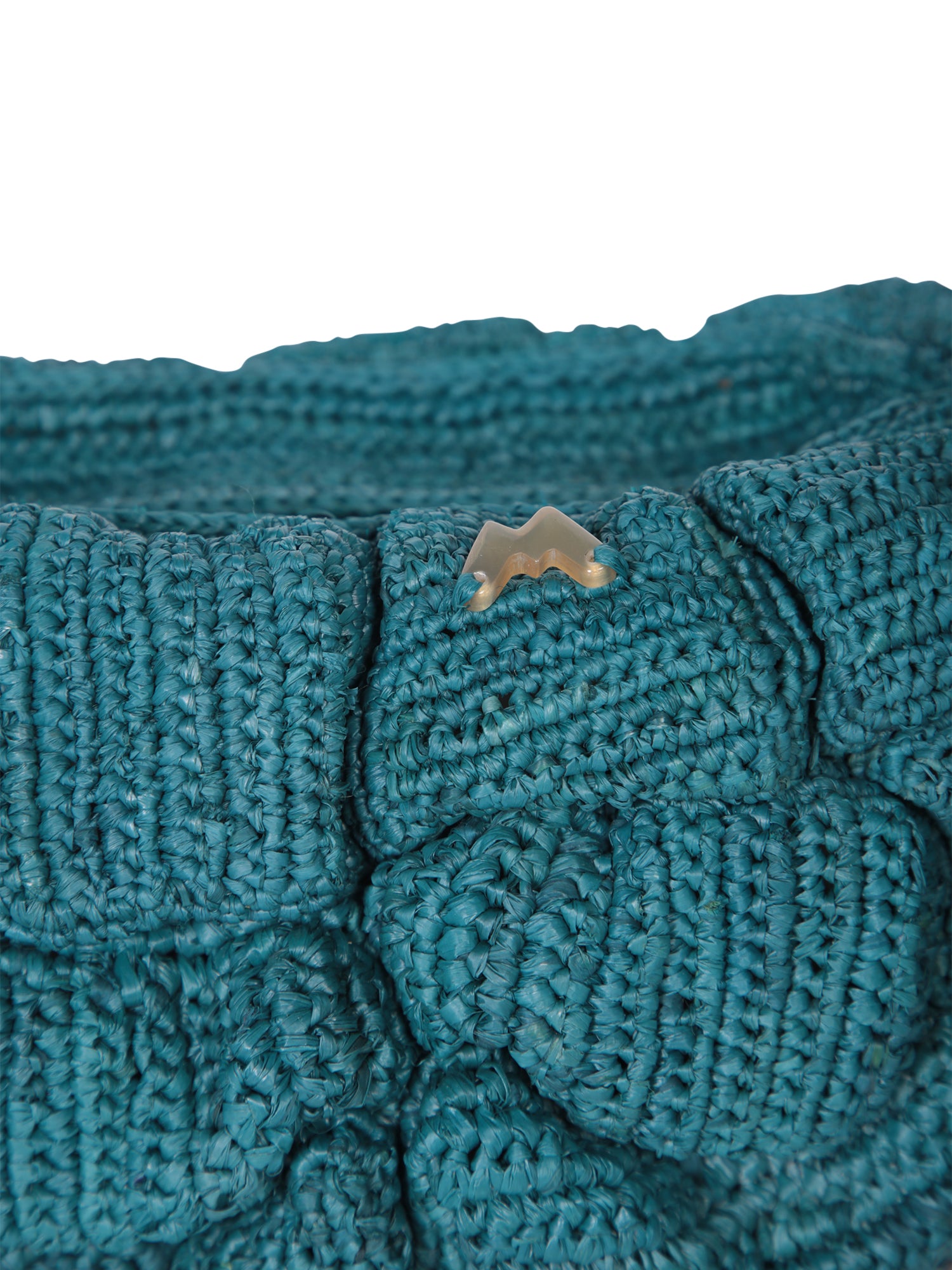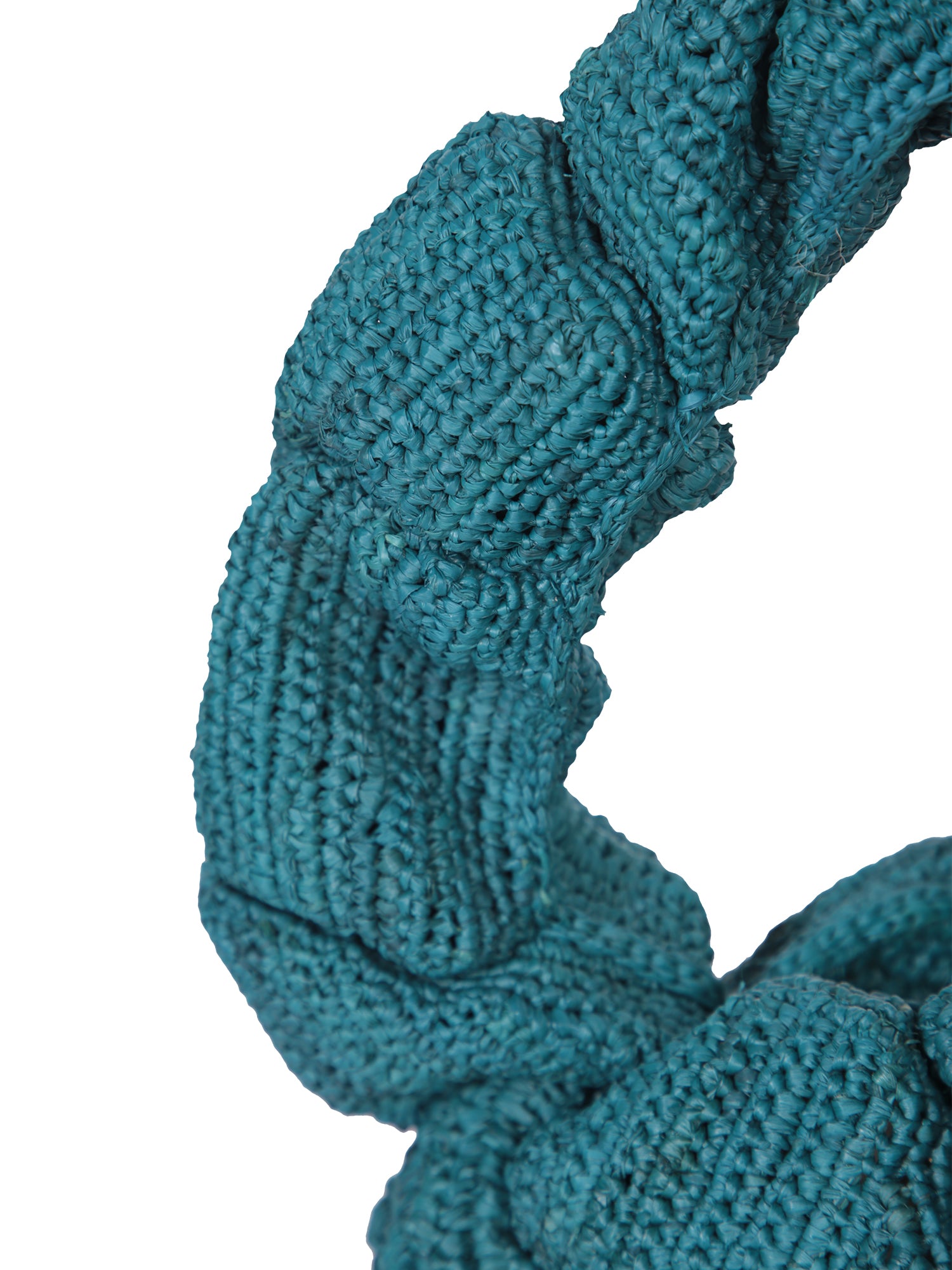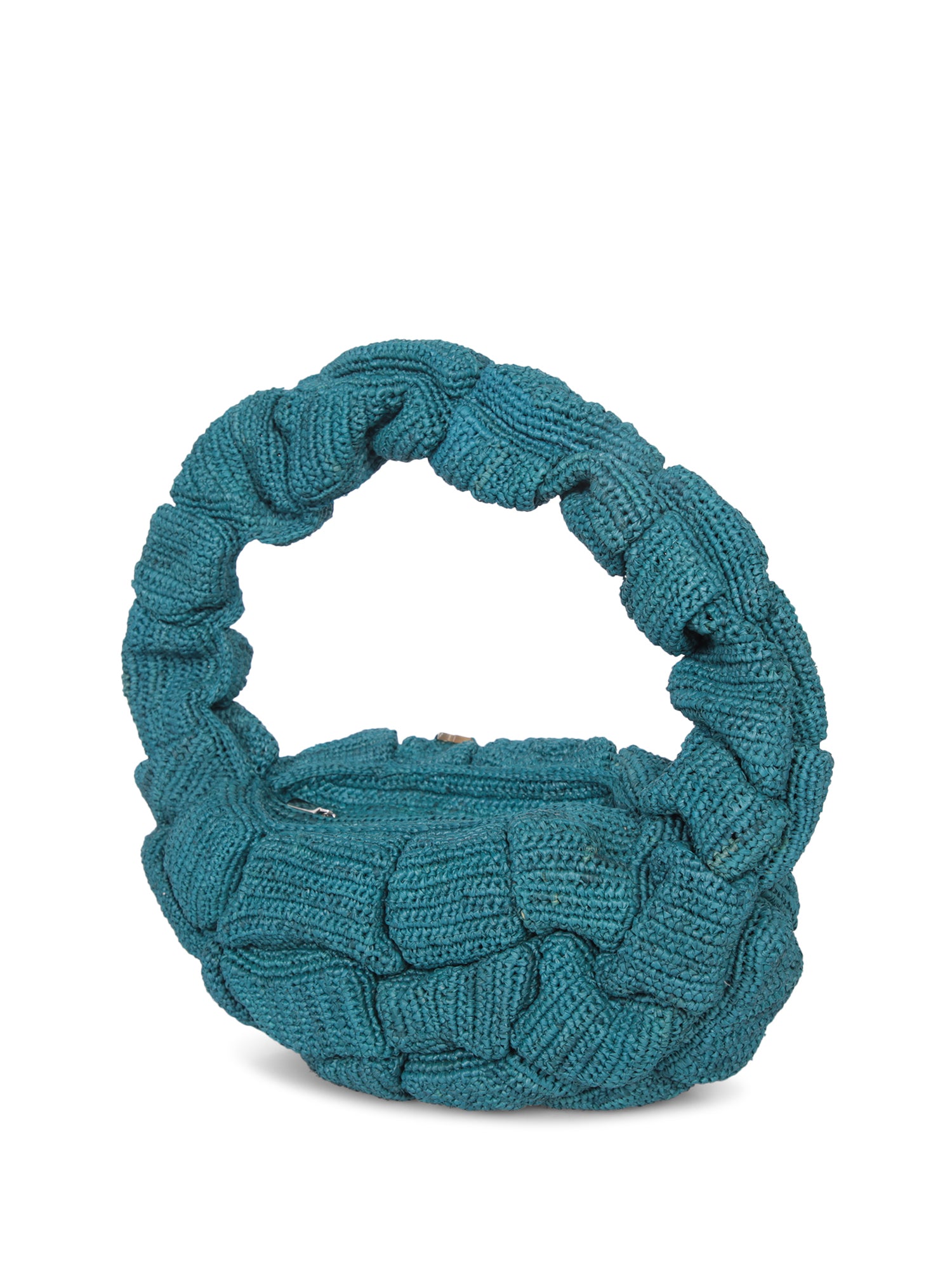 Knitted interwoven bag. Circular handles. Embossed logo detail.