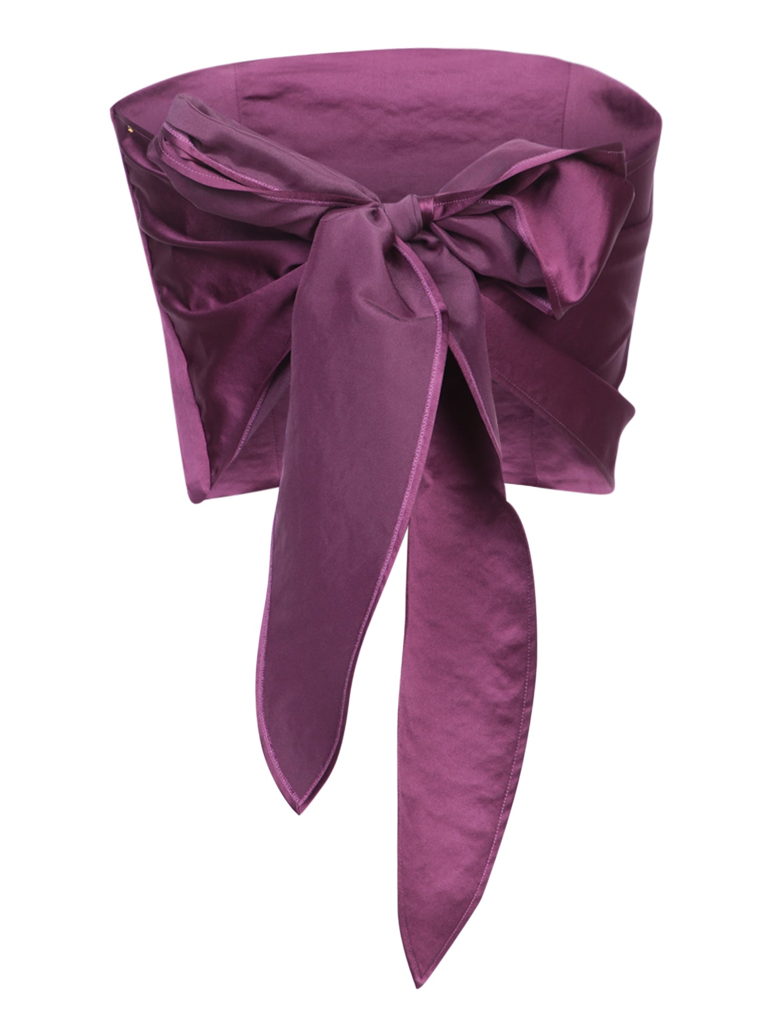 Sleeveless top in duchesse fabric. Asymmetric design with a long side sash that can be tied in various styles.