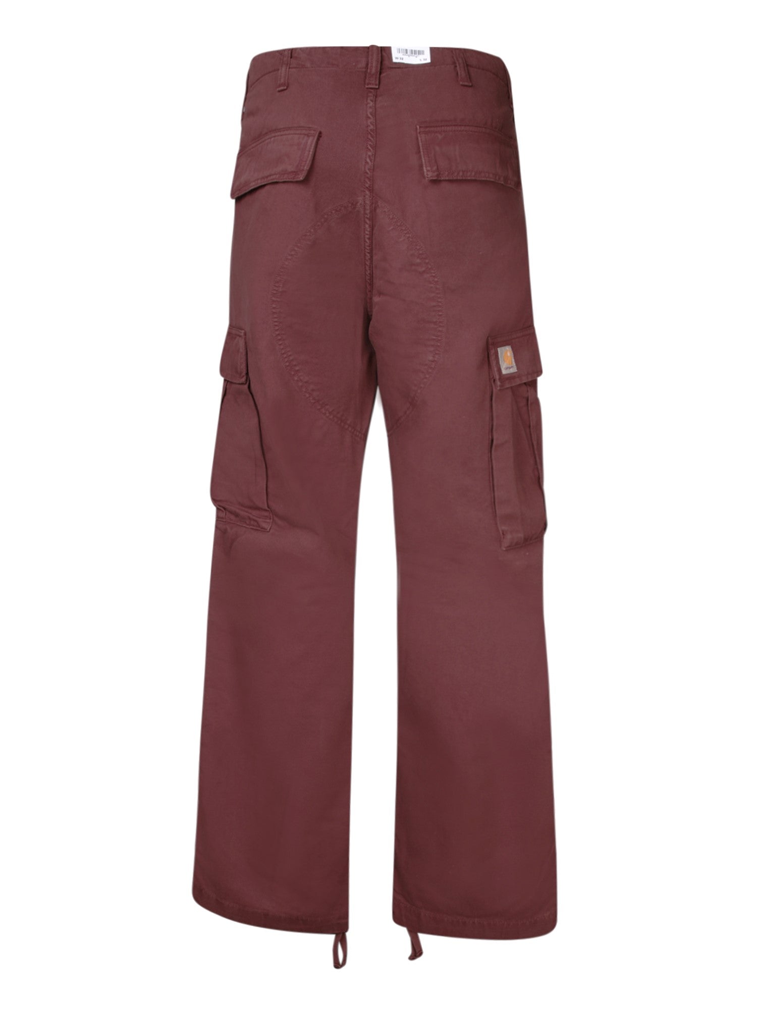 Button closure, multiple pockets, straight leg, internally adjustable waist.