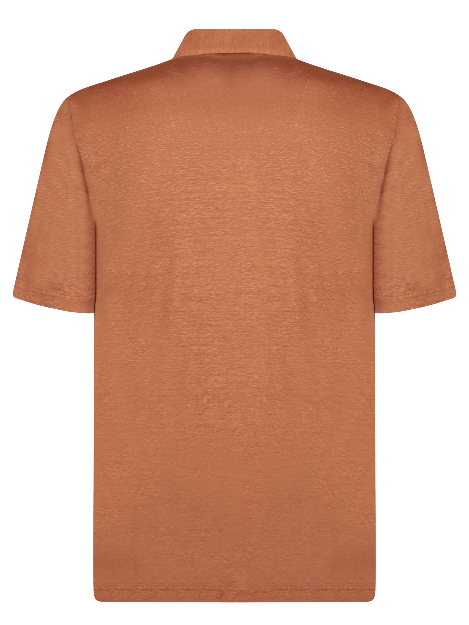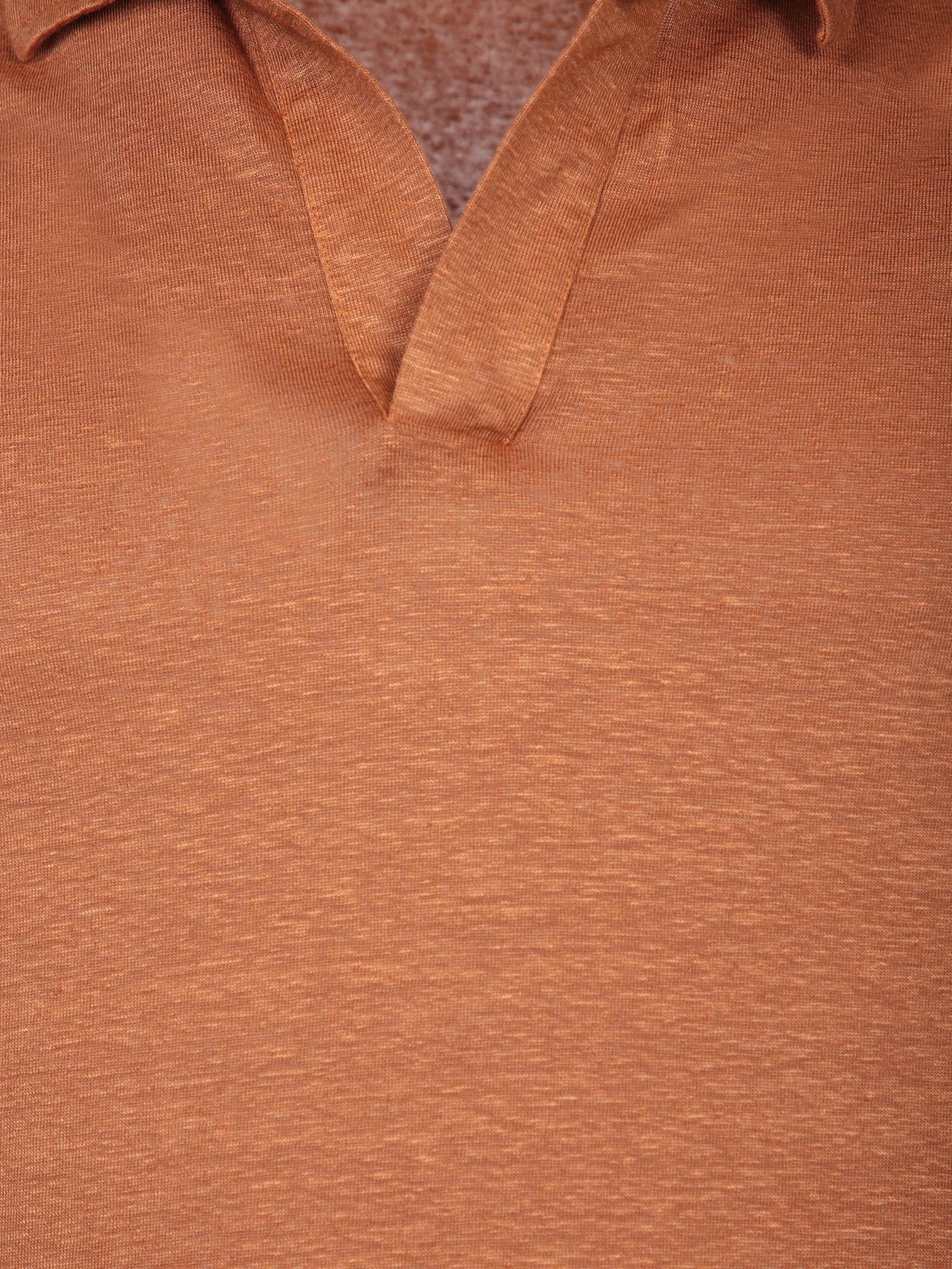 Short sleeve polo in linen jersey. Burnt color with a V-neck.