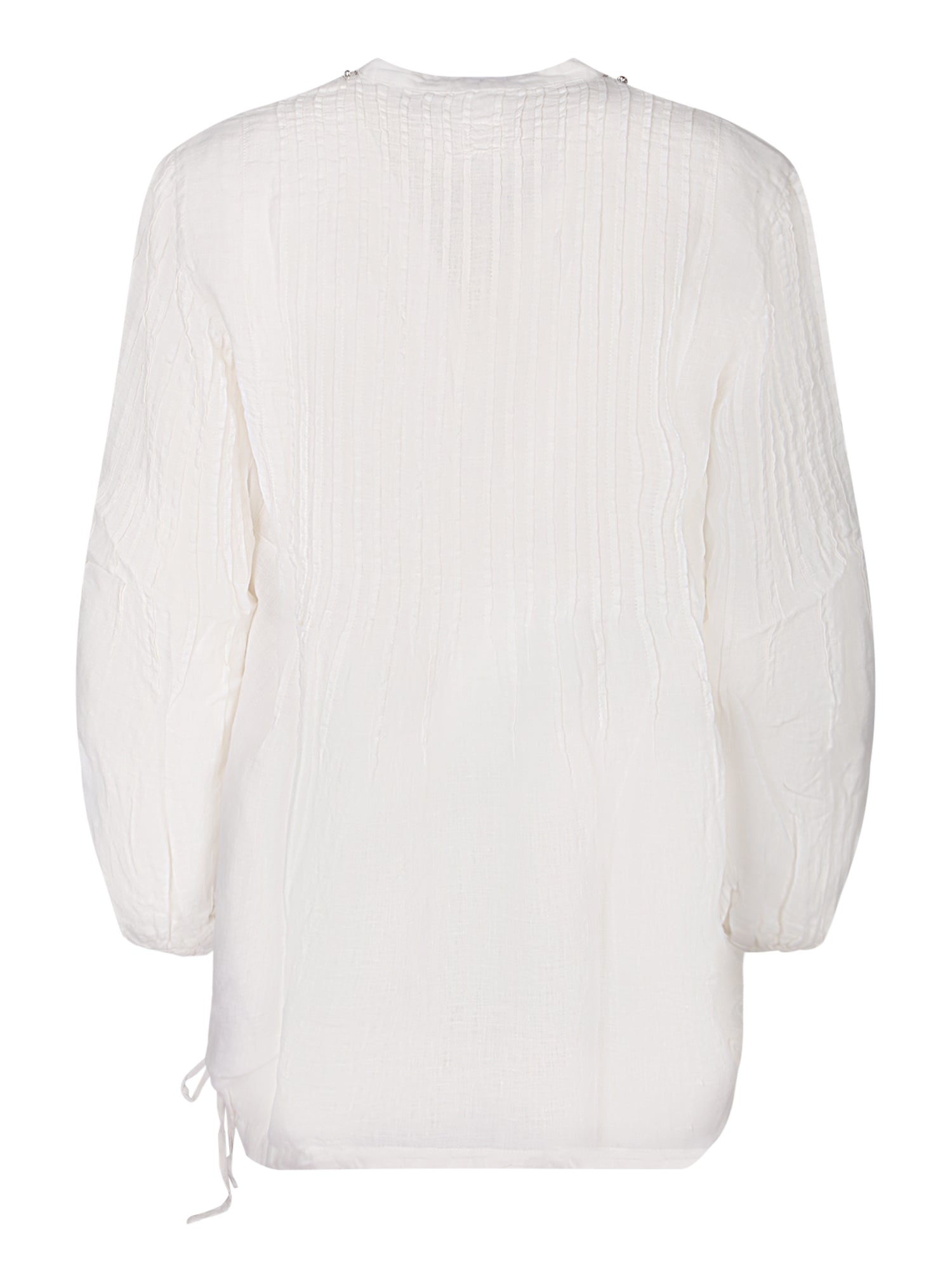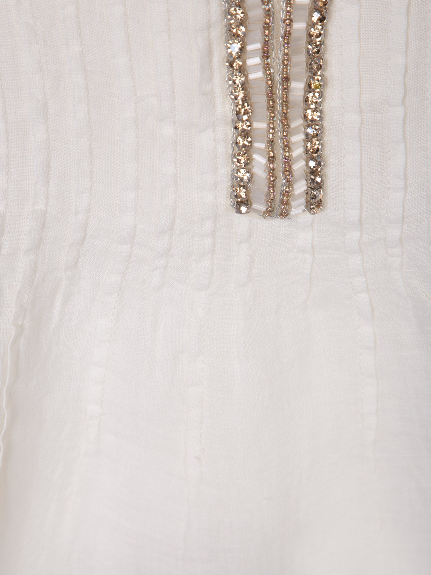 Long-sleeved linen blouse. V-neck with embroidered pearl and sequin details.