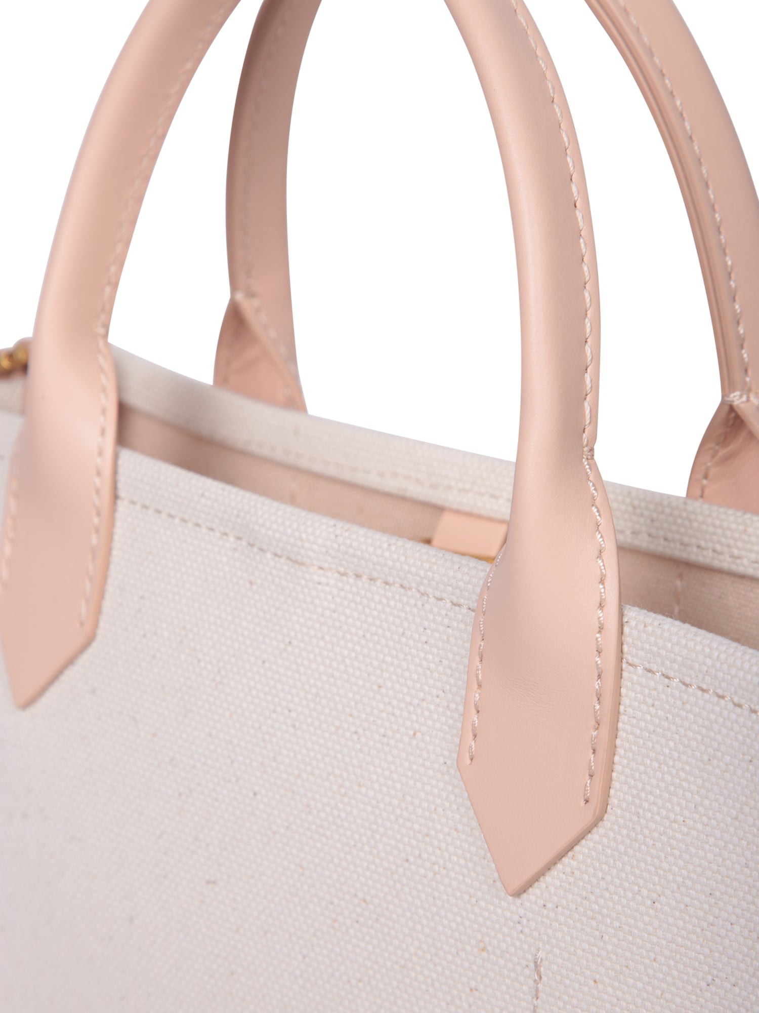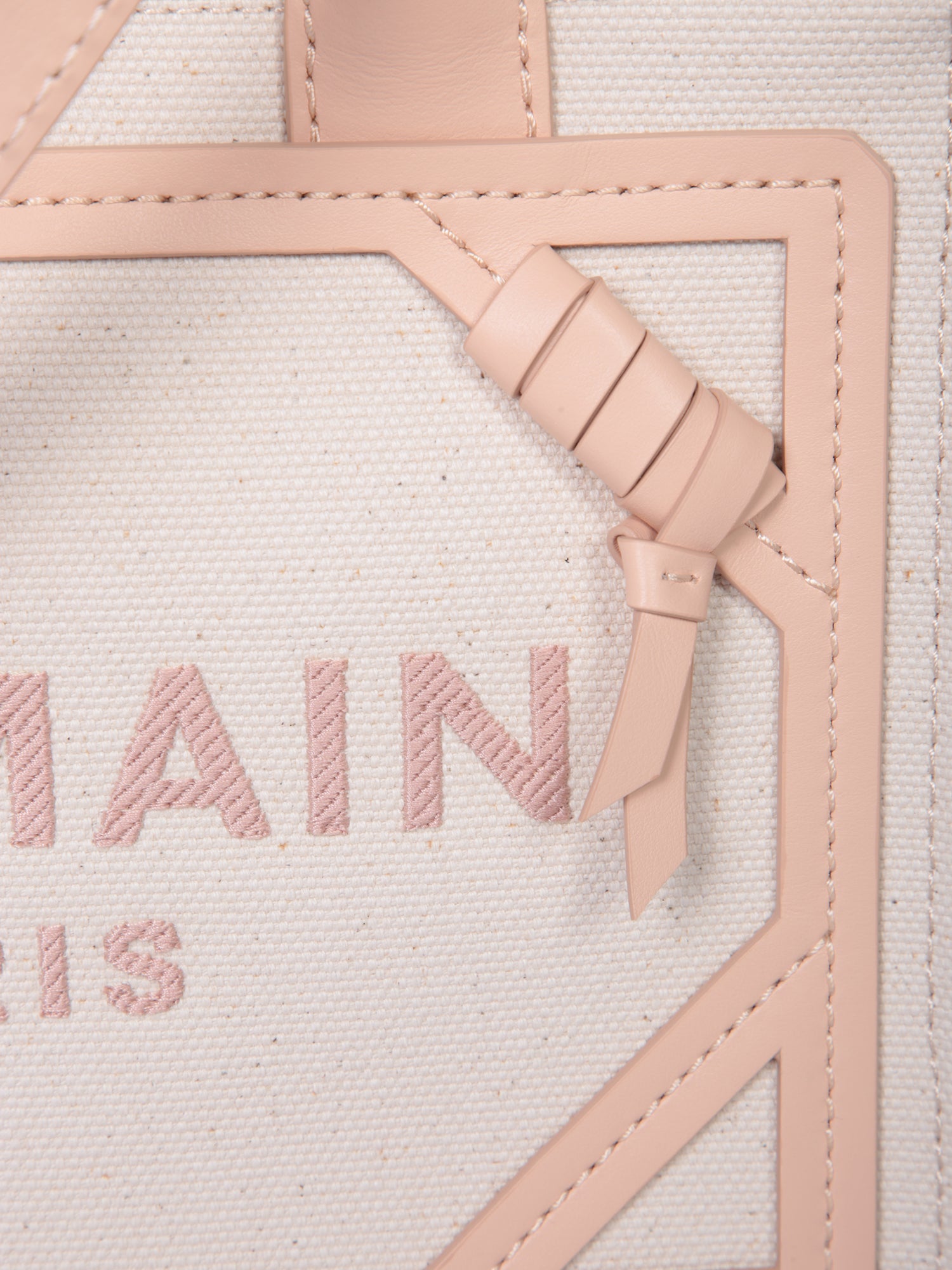 Crafted from high-quality canvas. Leather handles. Decorated with Balmain Paris logo.