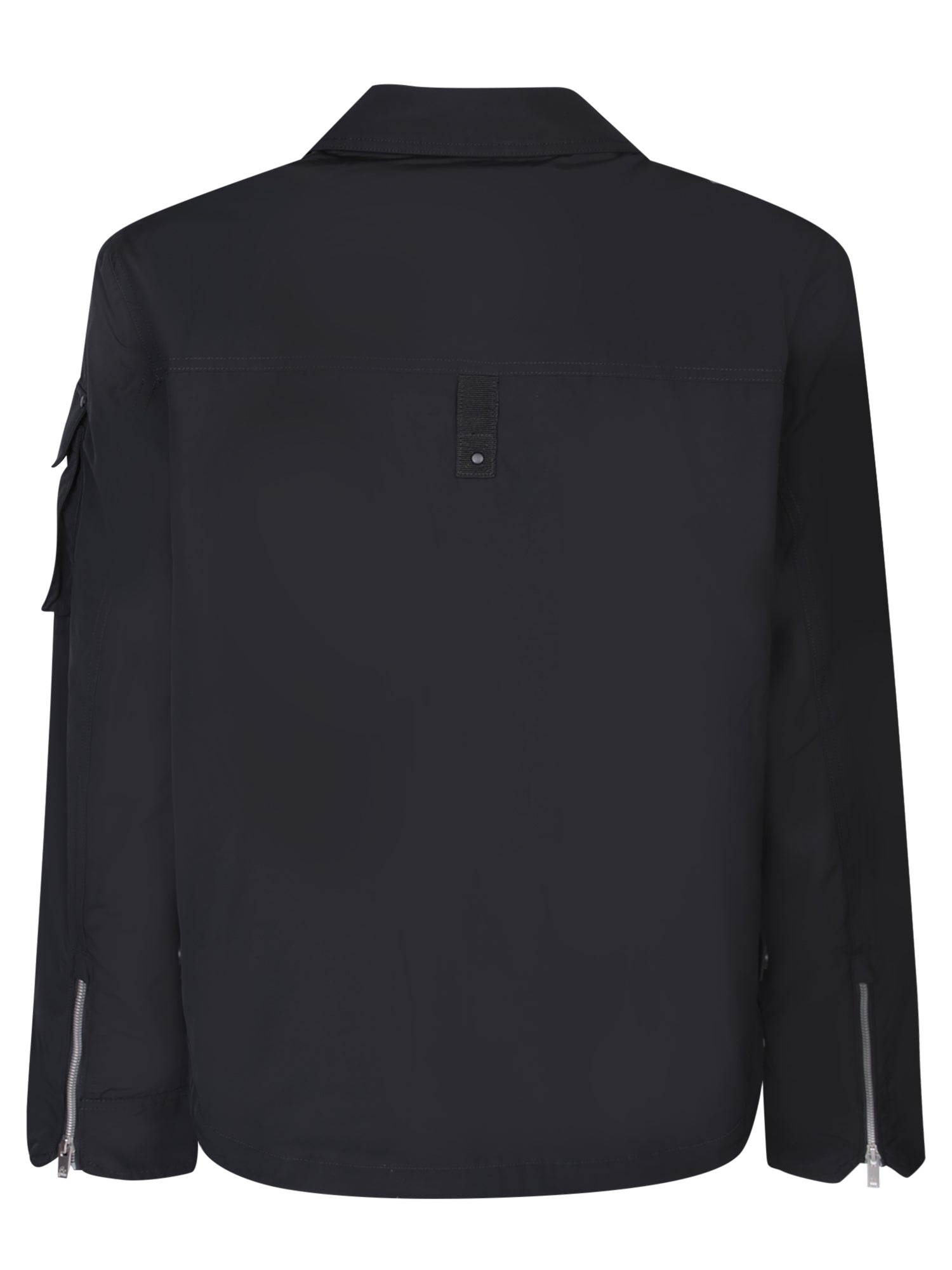 Long sleeve jacket with front zip closure. Features a classic collar and four front snap-button pockets.