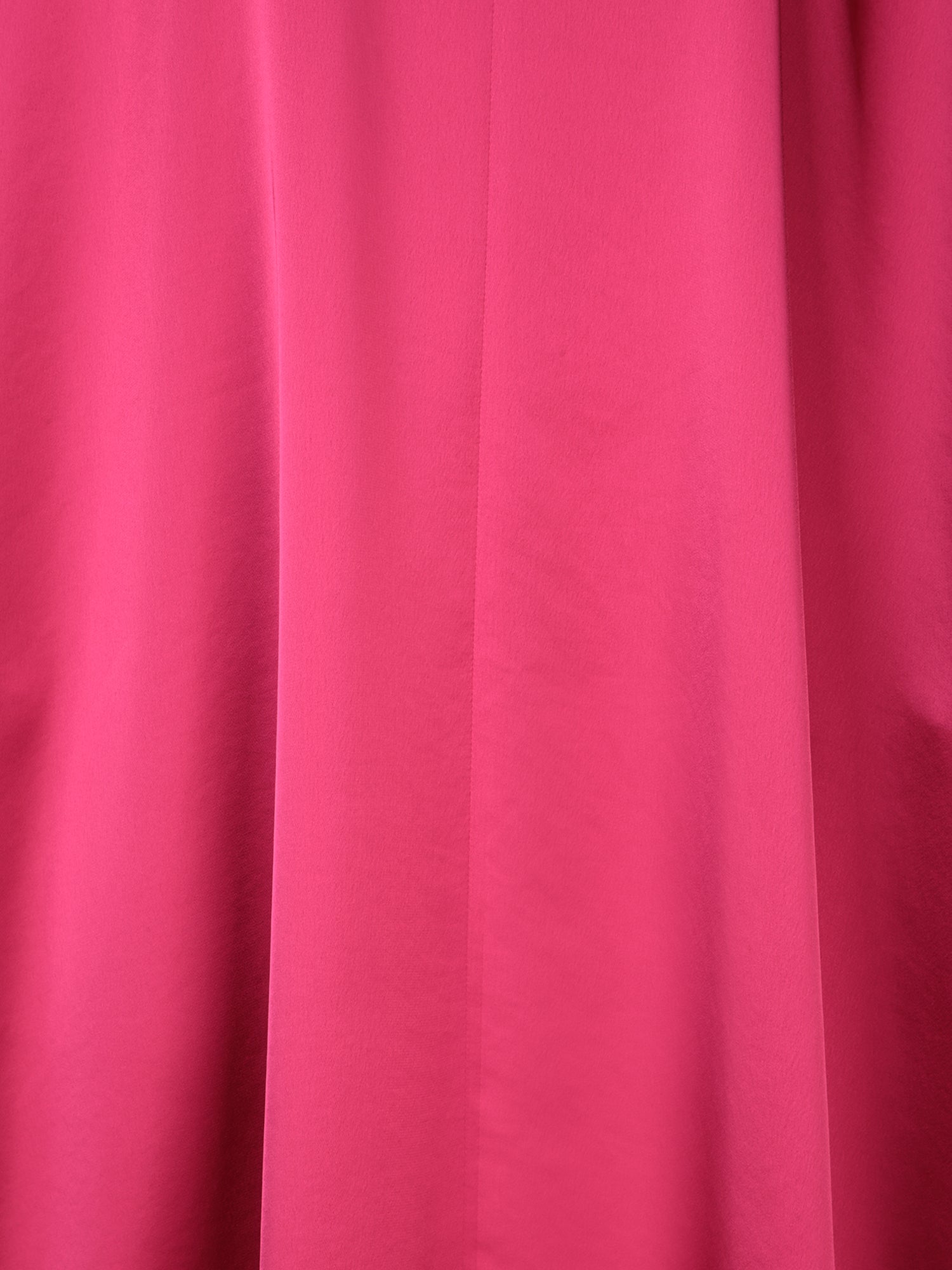 Kaftan dress with V-neckline. Wide short sleeves. Midi length. Cherry satin fabric.