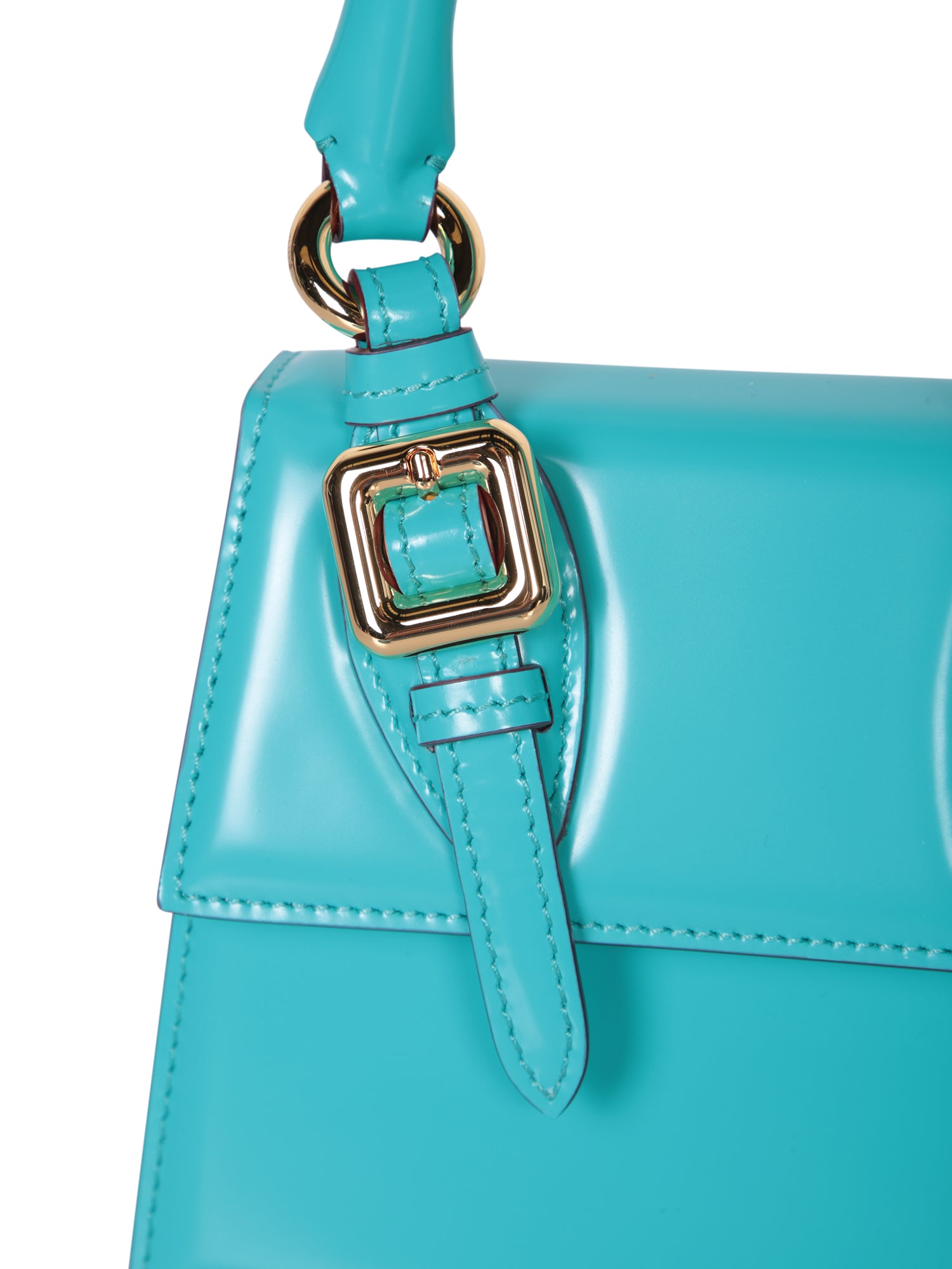 Single handle. Buckle closure. Golden metal finishing. Golden front logo.
