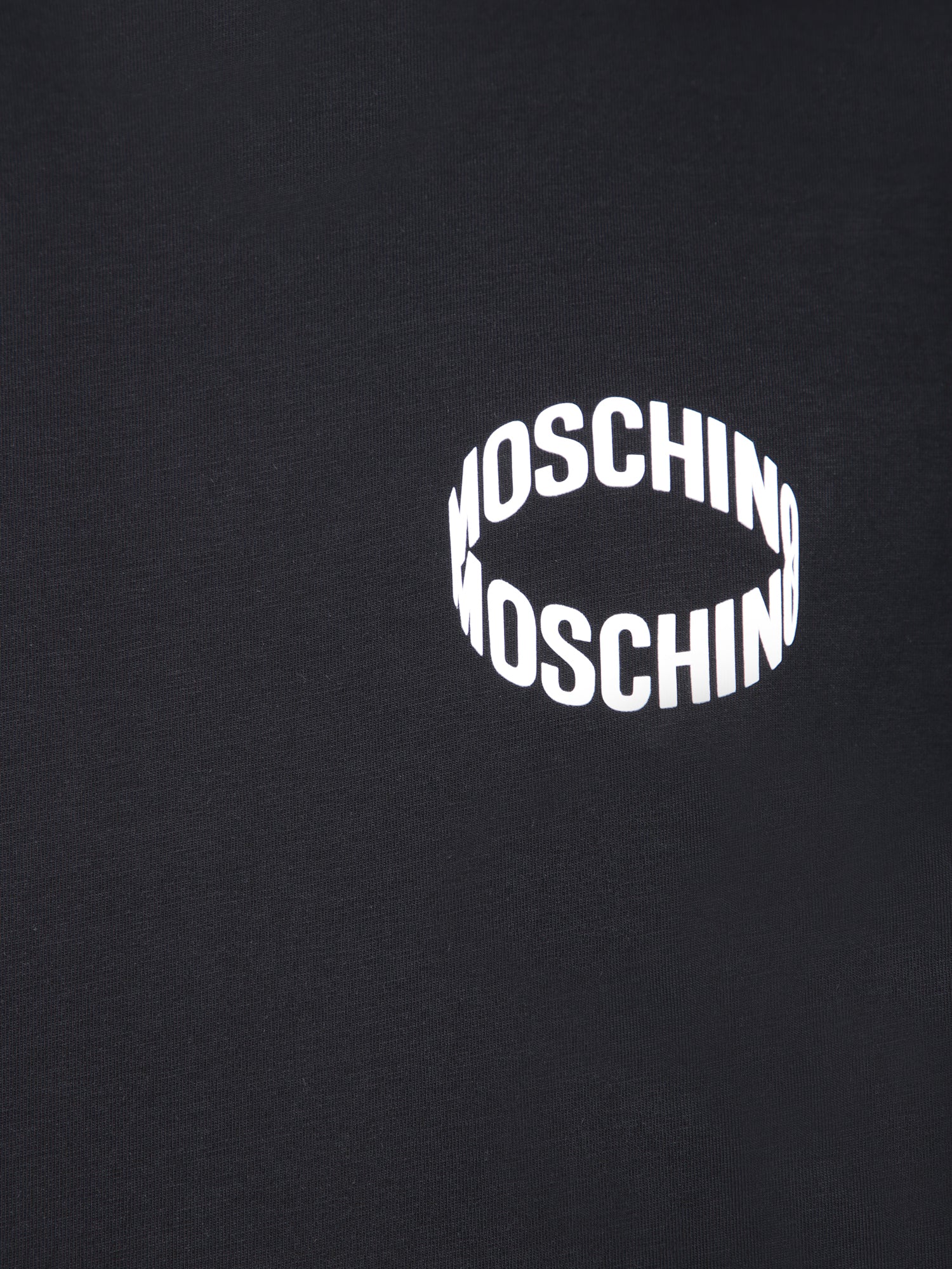 Short sleeve T-shirt. Moschino circular logo printed on the chest. Crew neck.