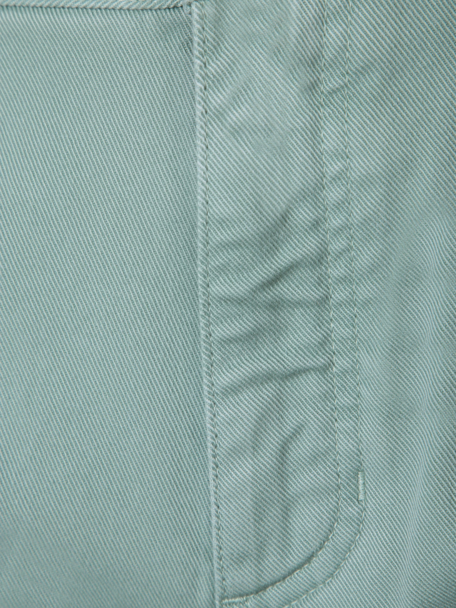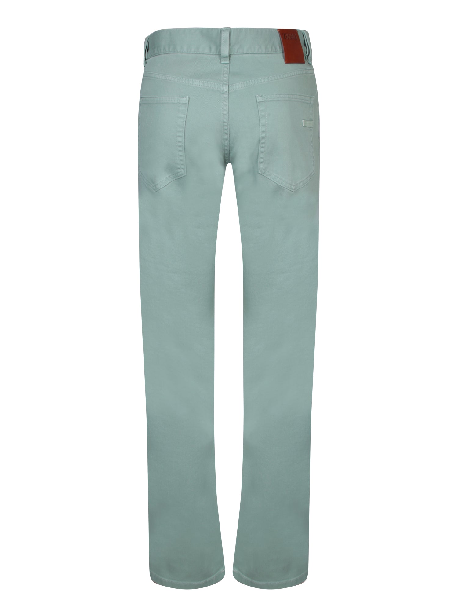 Regular fit cotton twill trousers. Side slip pockets and rear welt pockets. Front zip and button closure.