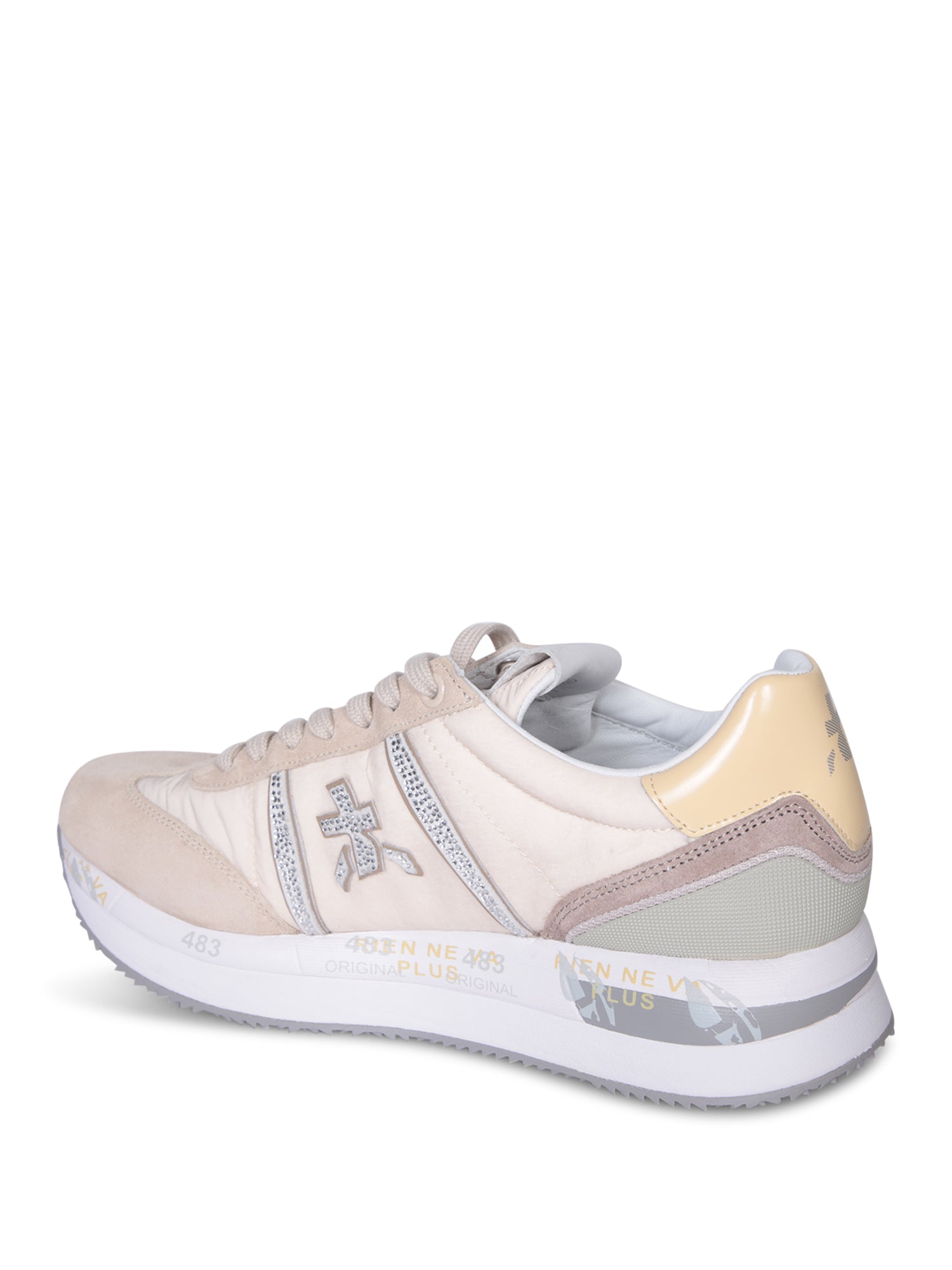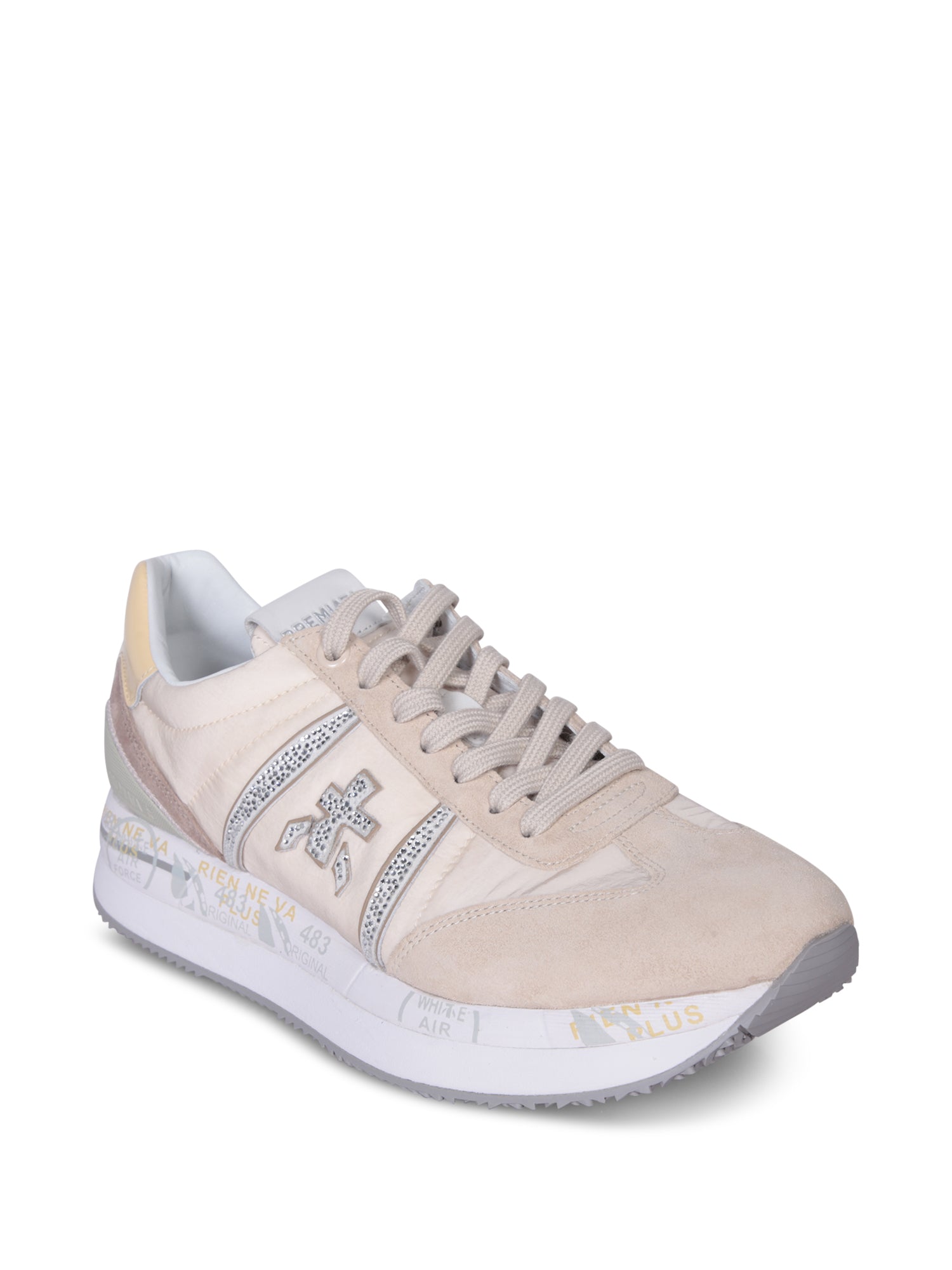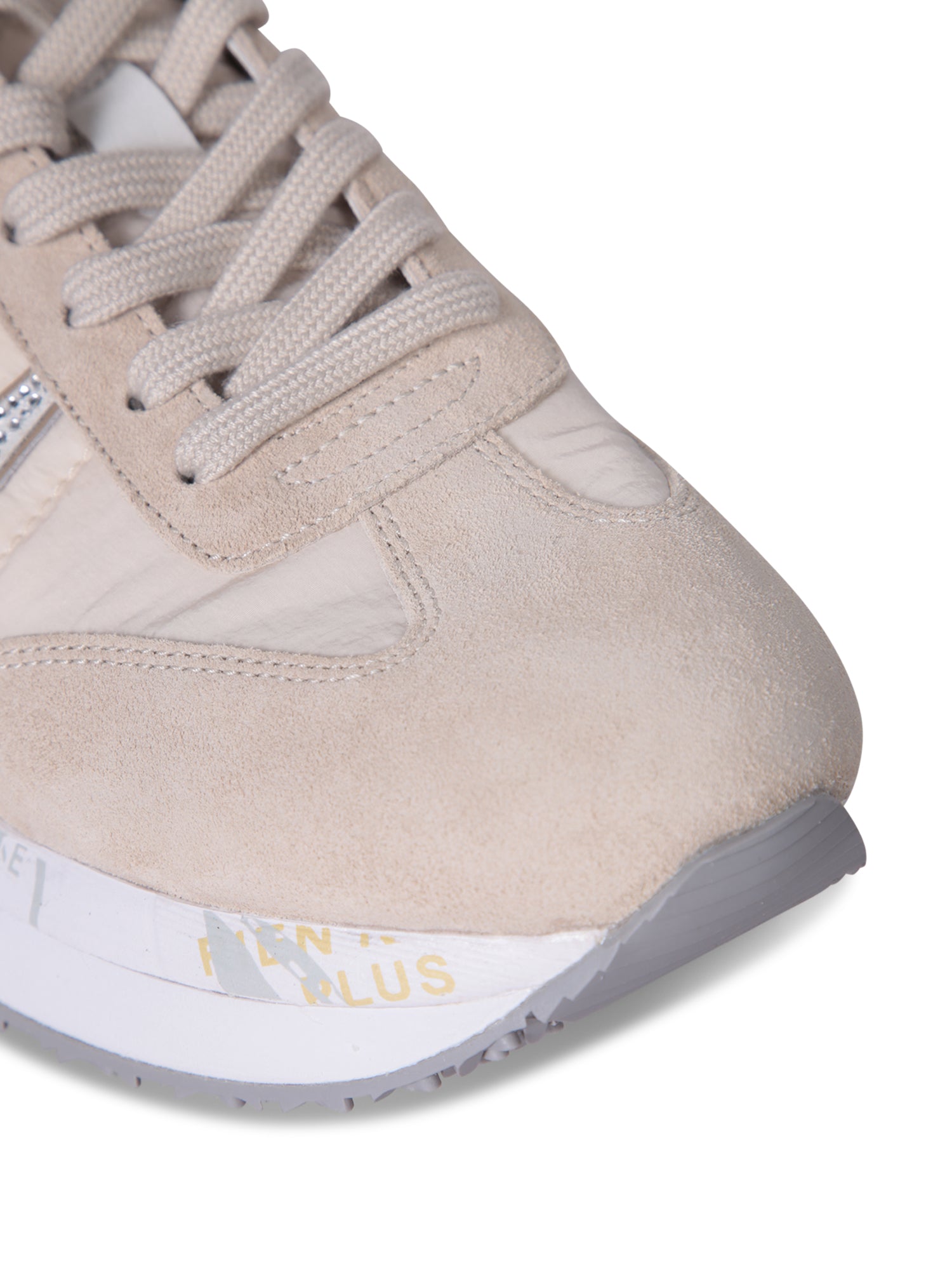 Suede leather sneakers with technical fabric details. Enhanced by the iconic Premiata metallic logo.