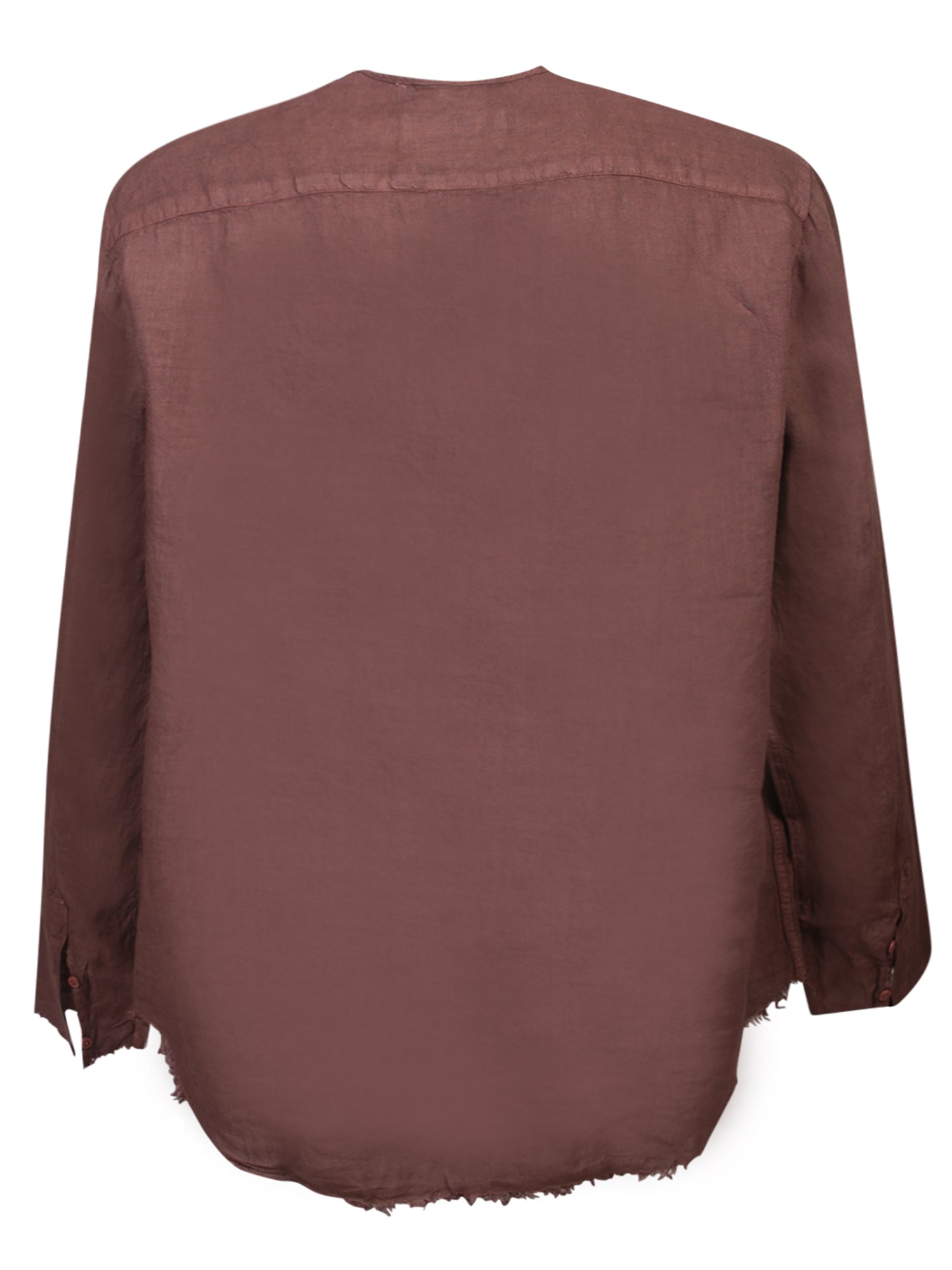 Long-sleeved shirt in lightweight fabric. Round neck without collar. Raw hem and tailored details.