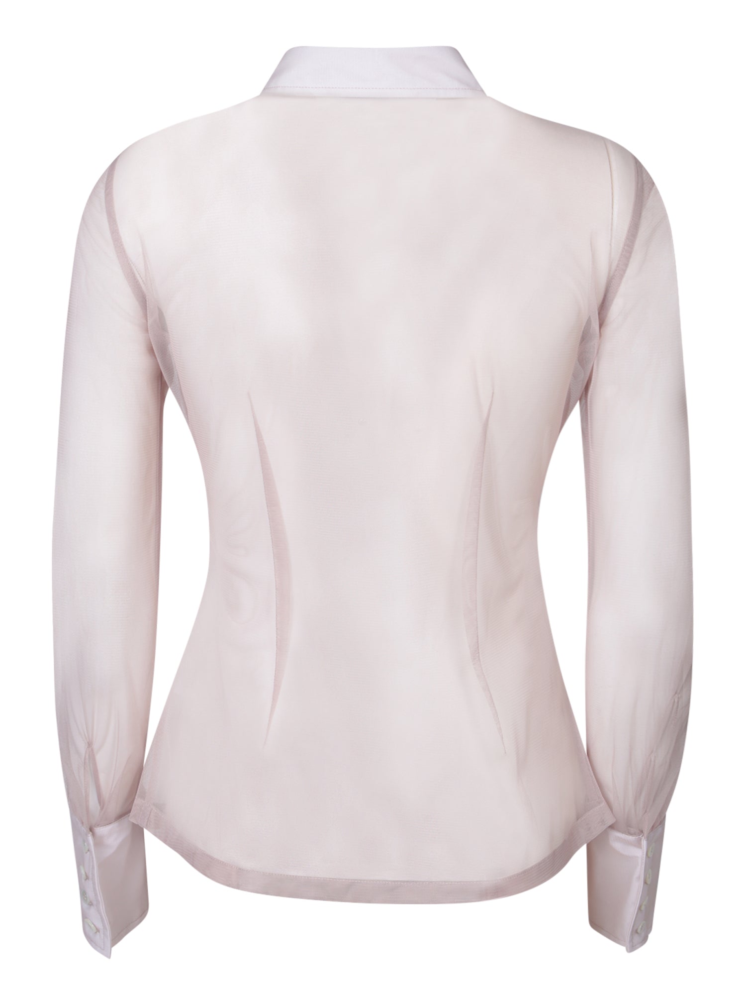 MM6 Maison Margiela puts a quintessentially avant-garde twist on the classic white shirt. Panels of sheer tulle are framed by a white cotton collar and cuffs