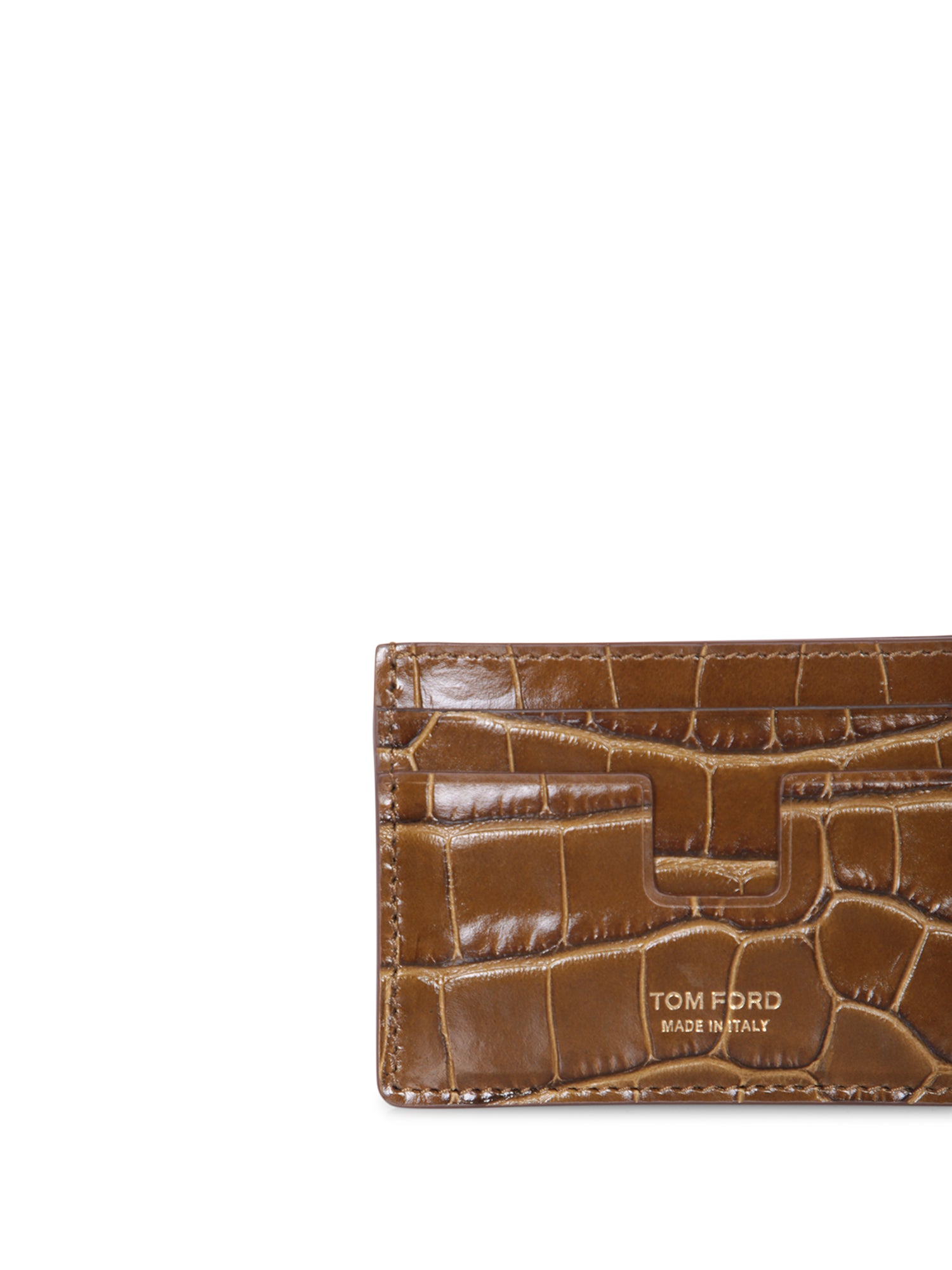 Crafted from crocodile leather. Precise stitching. Four card slots.