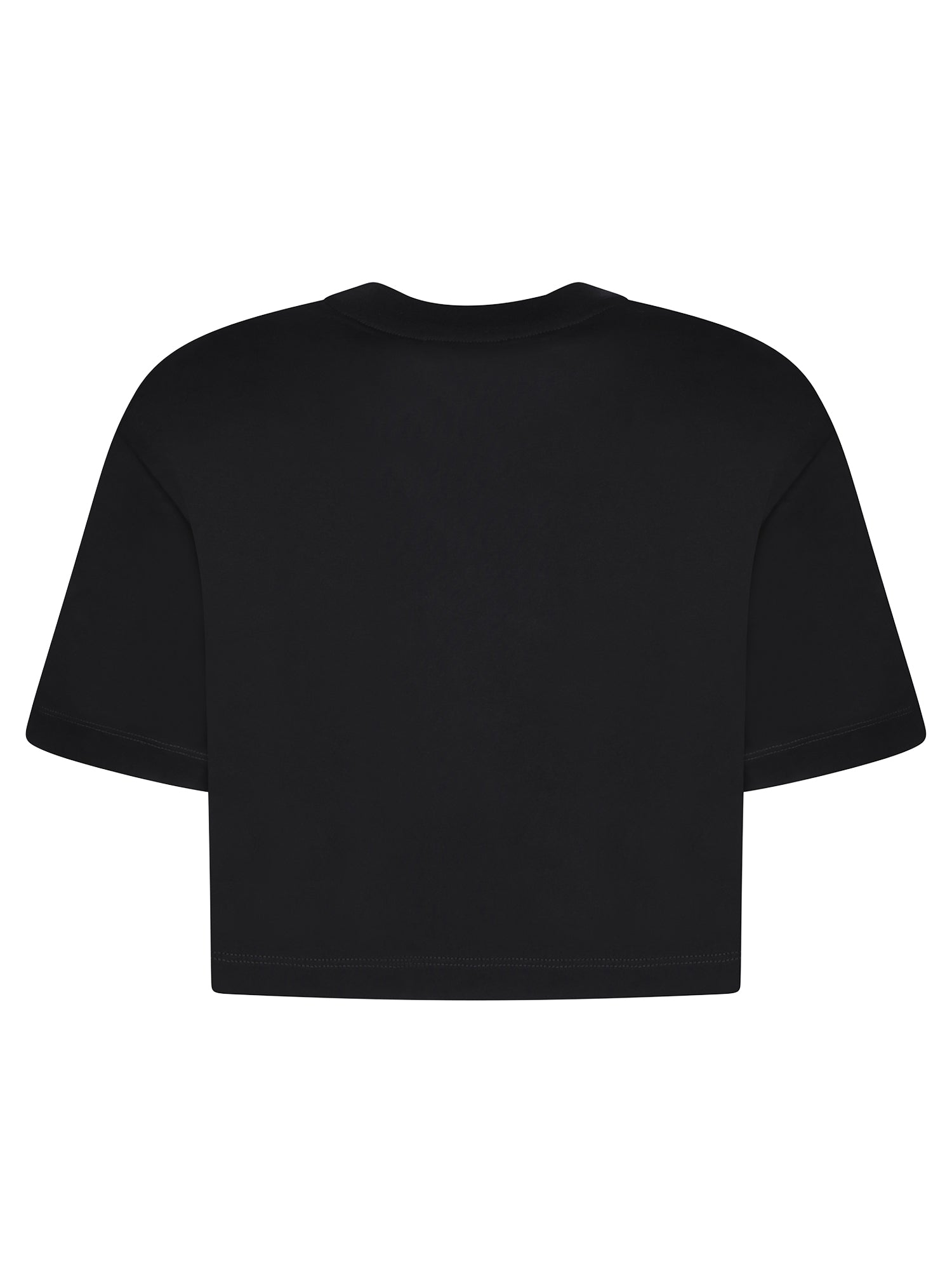 Cropped T-shirt, short sleeves, crew neck, contrasting Moschino logo.