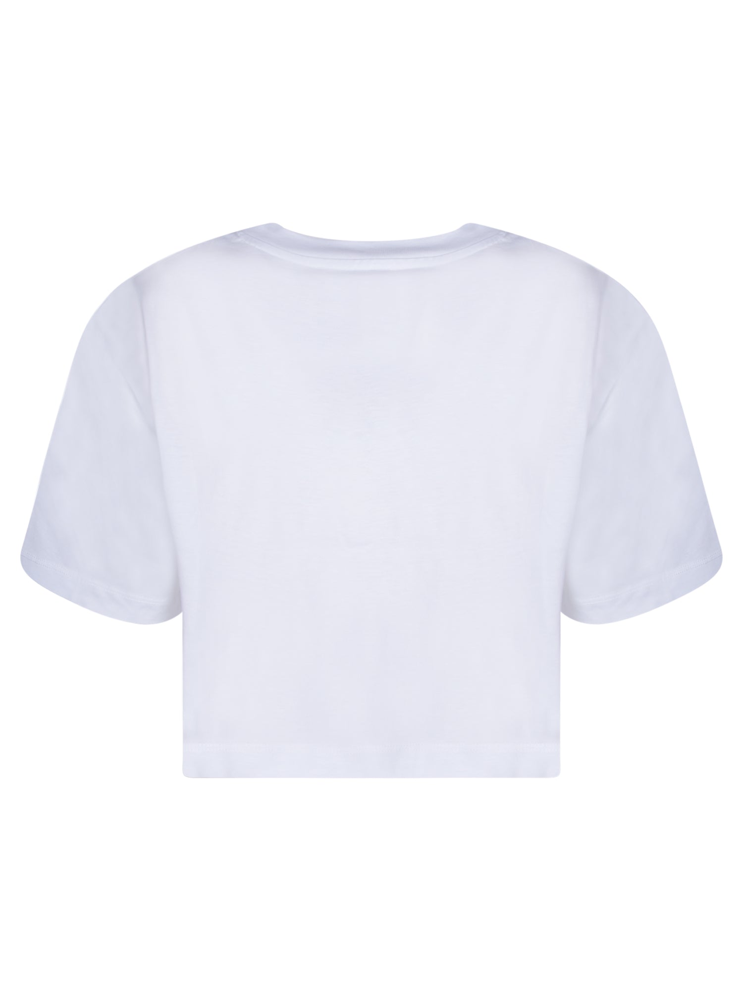 Cropped T-shirt with graphic logo. Crew neckline. Wide short sleeves.