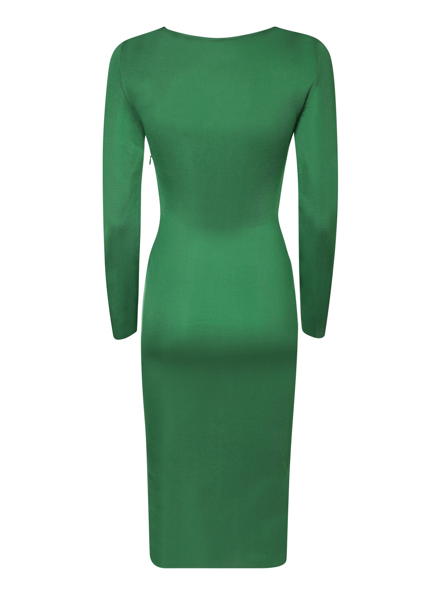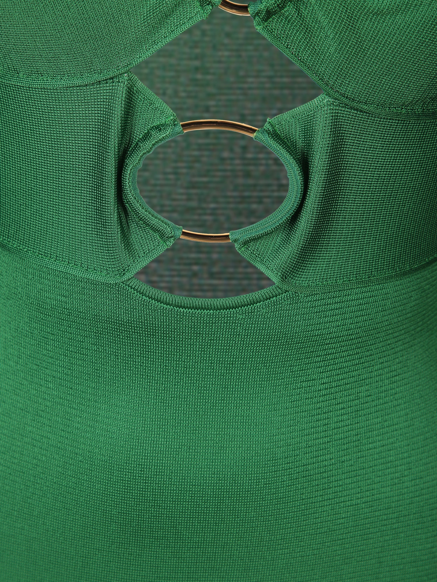 This Tom Ford dress is designed with bold cut-out details accompanied by gold rings and finished with a sweetheart neckline