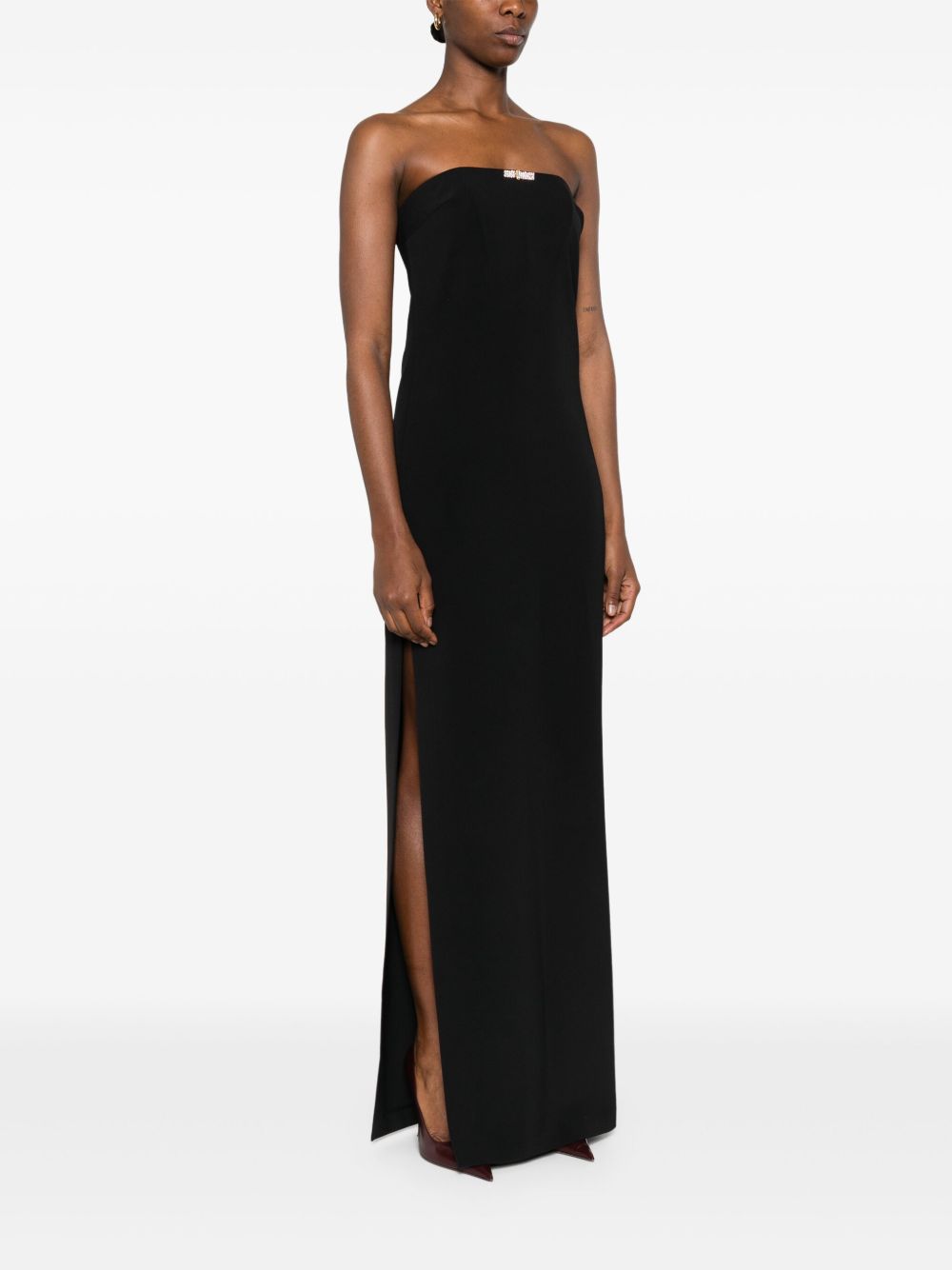 black concealed side hook and zip fastening boned bodice side slit strapless