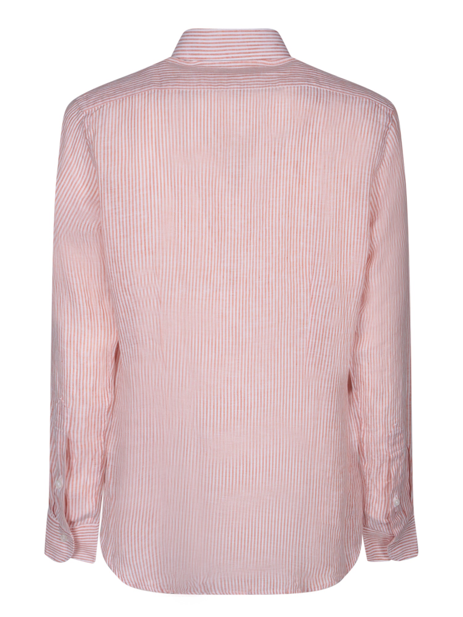 This DELL'OGLIO designed shirt blends elegance and comfort with its breathable linen fabric. Featuring fine orange and white stripes, it has a sophisticated cut, making it perfect for both formal and casual occasions.