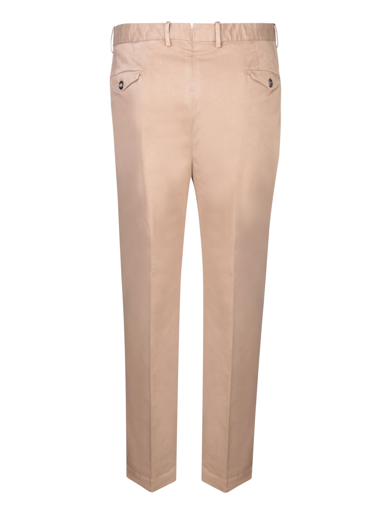 Straight-cut trousers. High-quality satin fabric. Regular waist with hook and zip fastening.