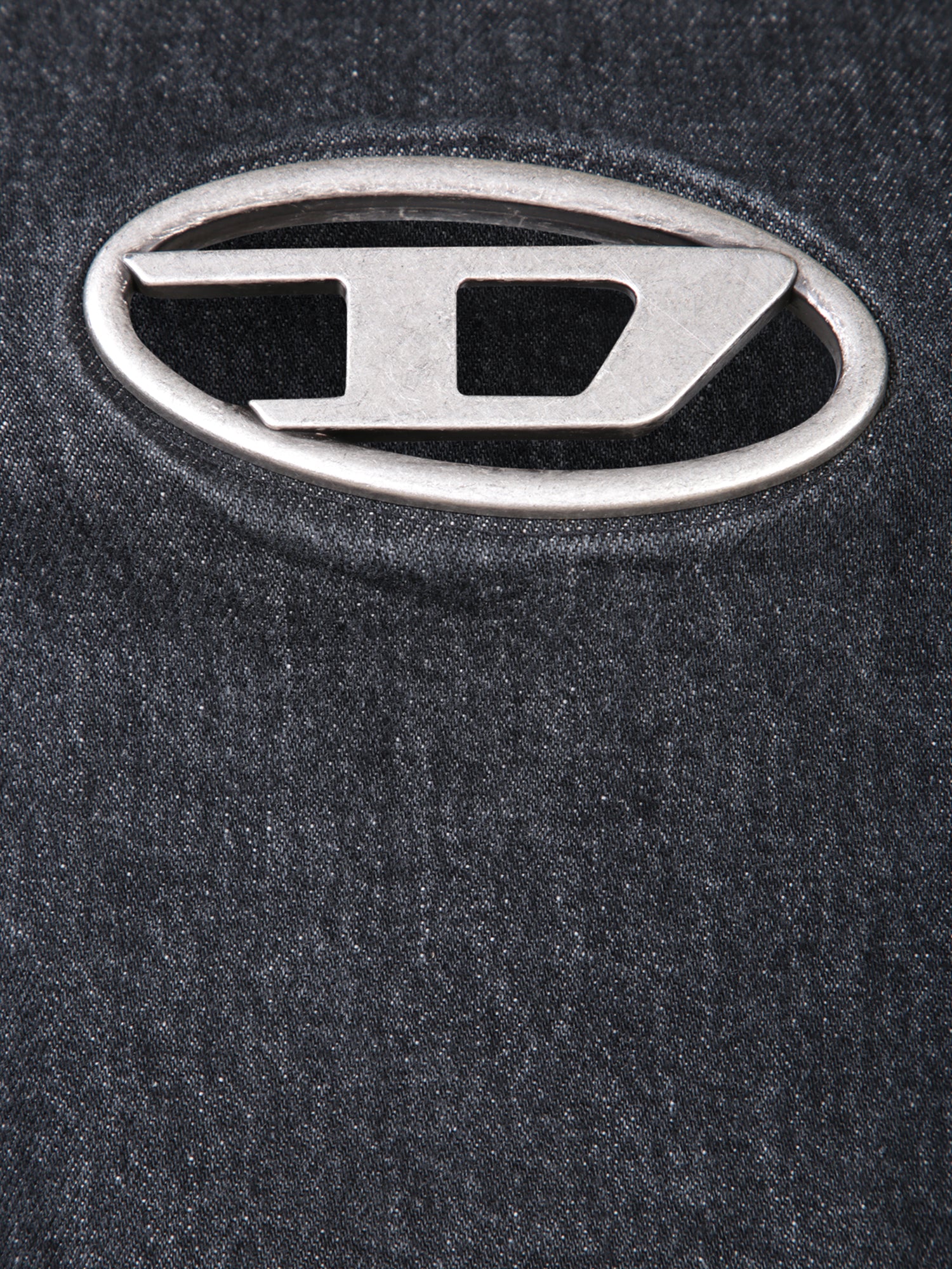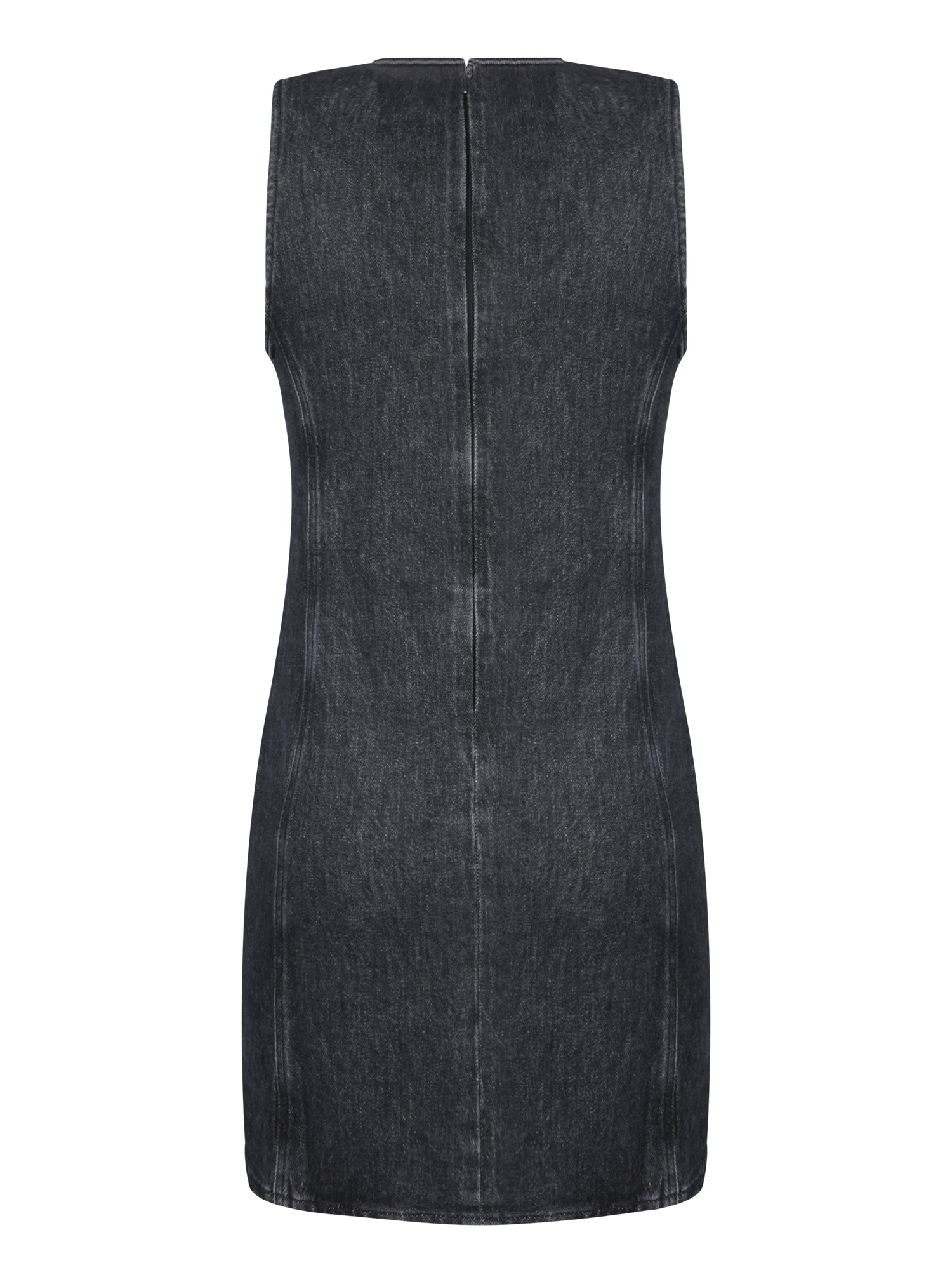 Sleeveless dress. Iconic Diesel logo on the front. Washed black denim finish.