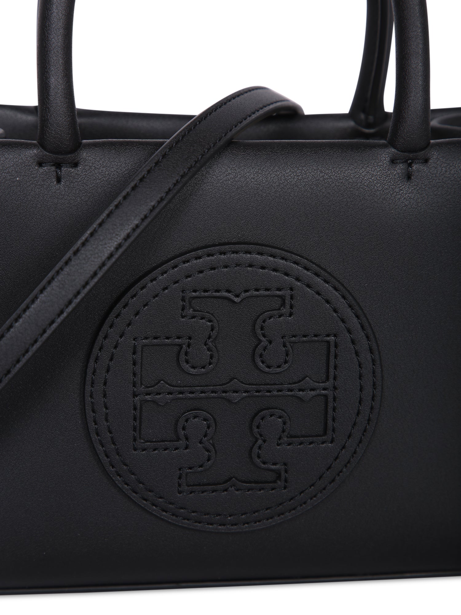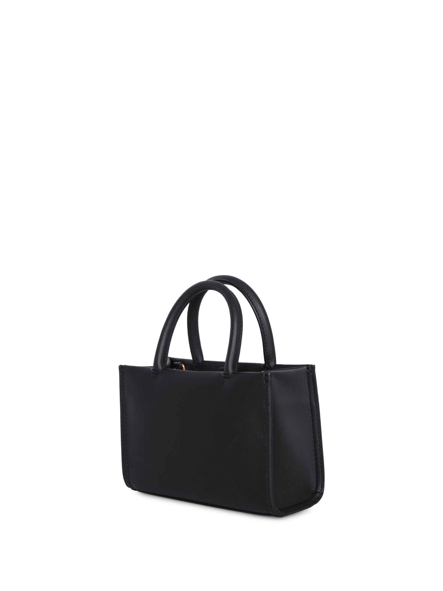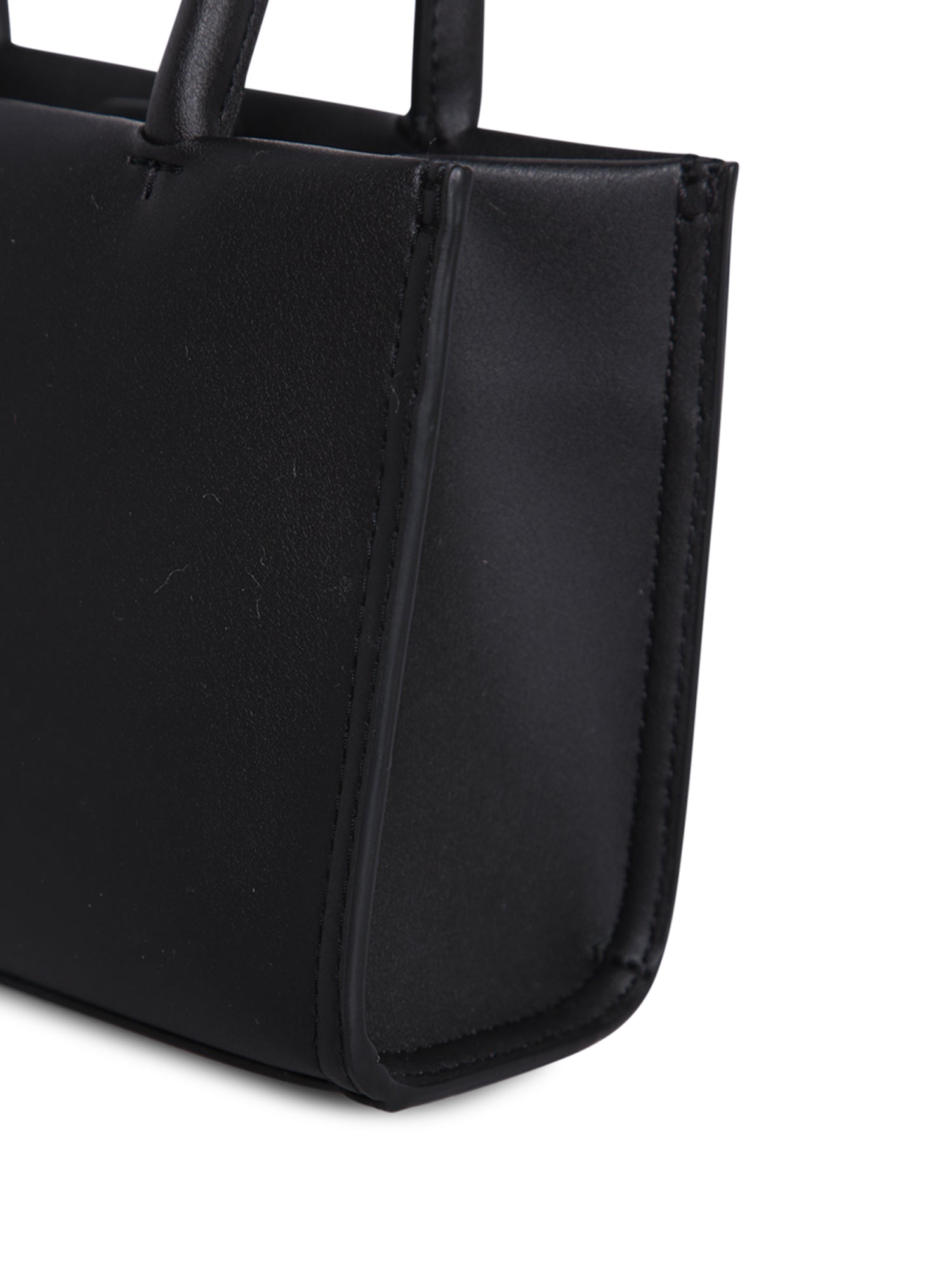 Black leather bag. Two top handles and a removable shoulder strap. Magnetic closure.
