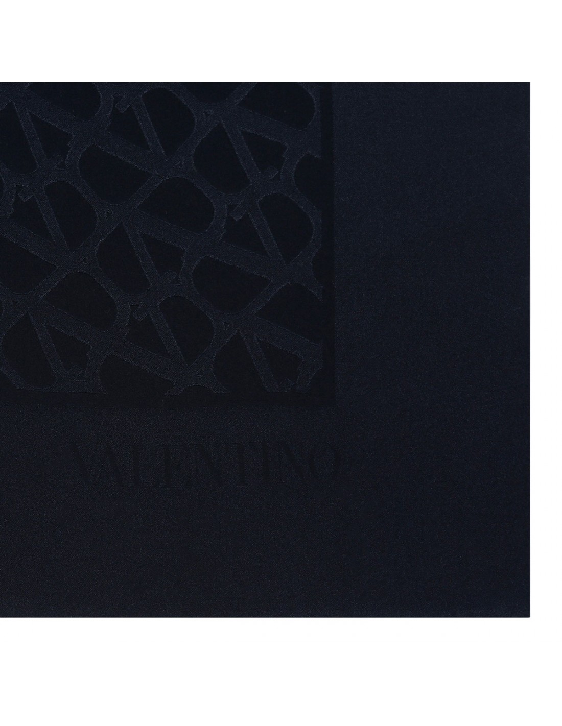 Navy silk scarf from Valentino featuring Toile Iconographe motif printed allover and logo label.