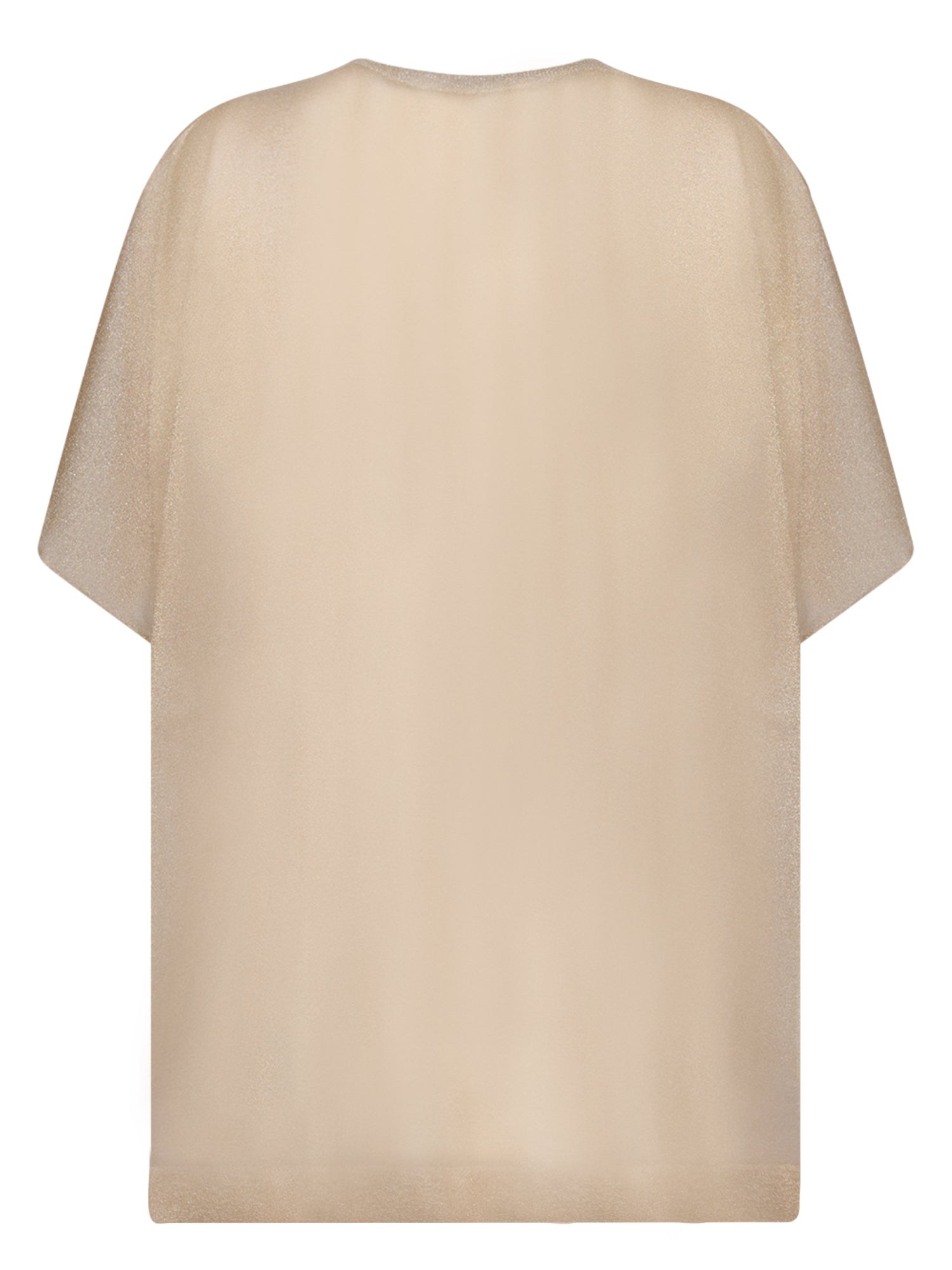 Round neckline. Short sleeves. Metallic yarn fabric.