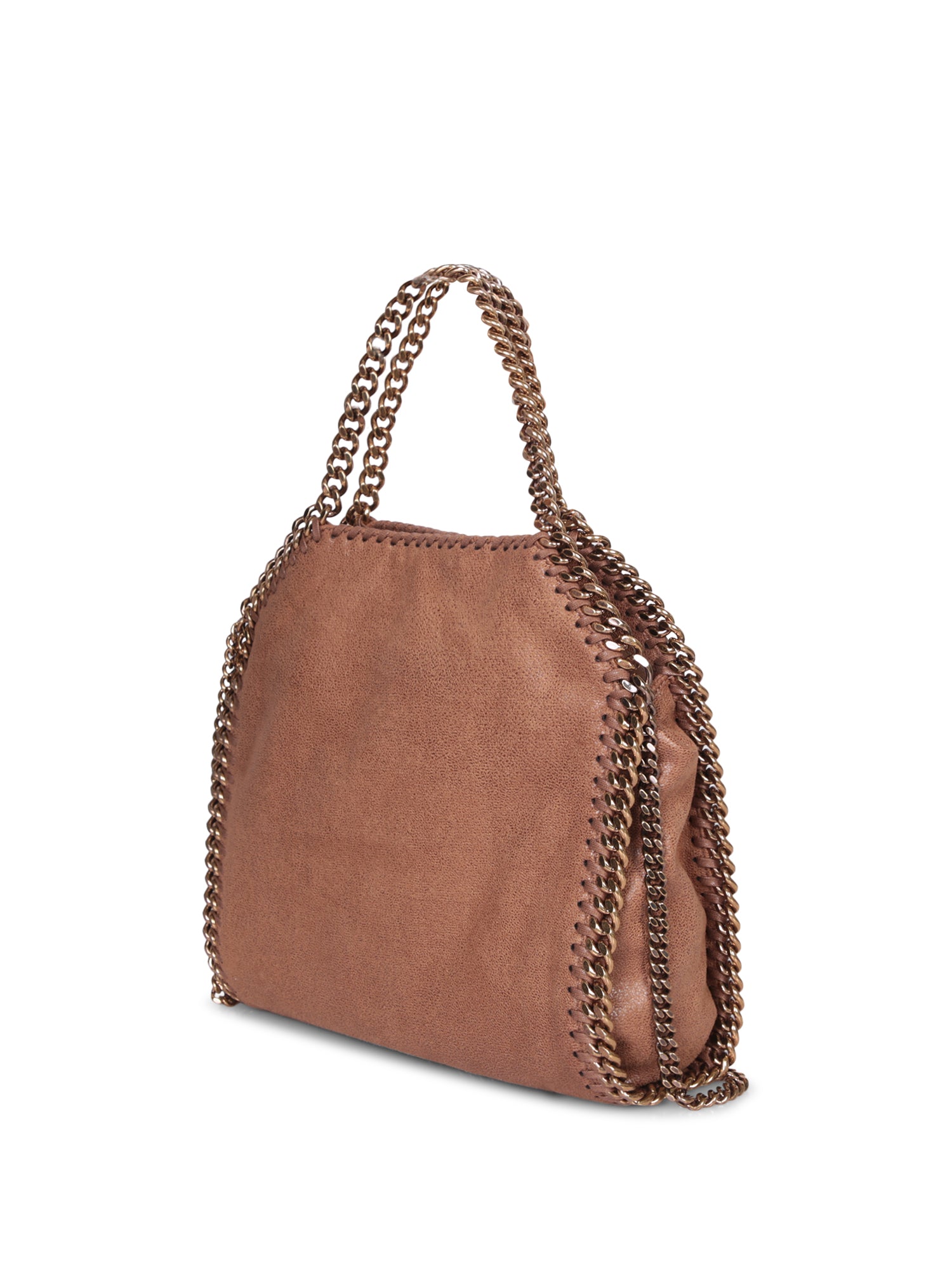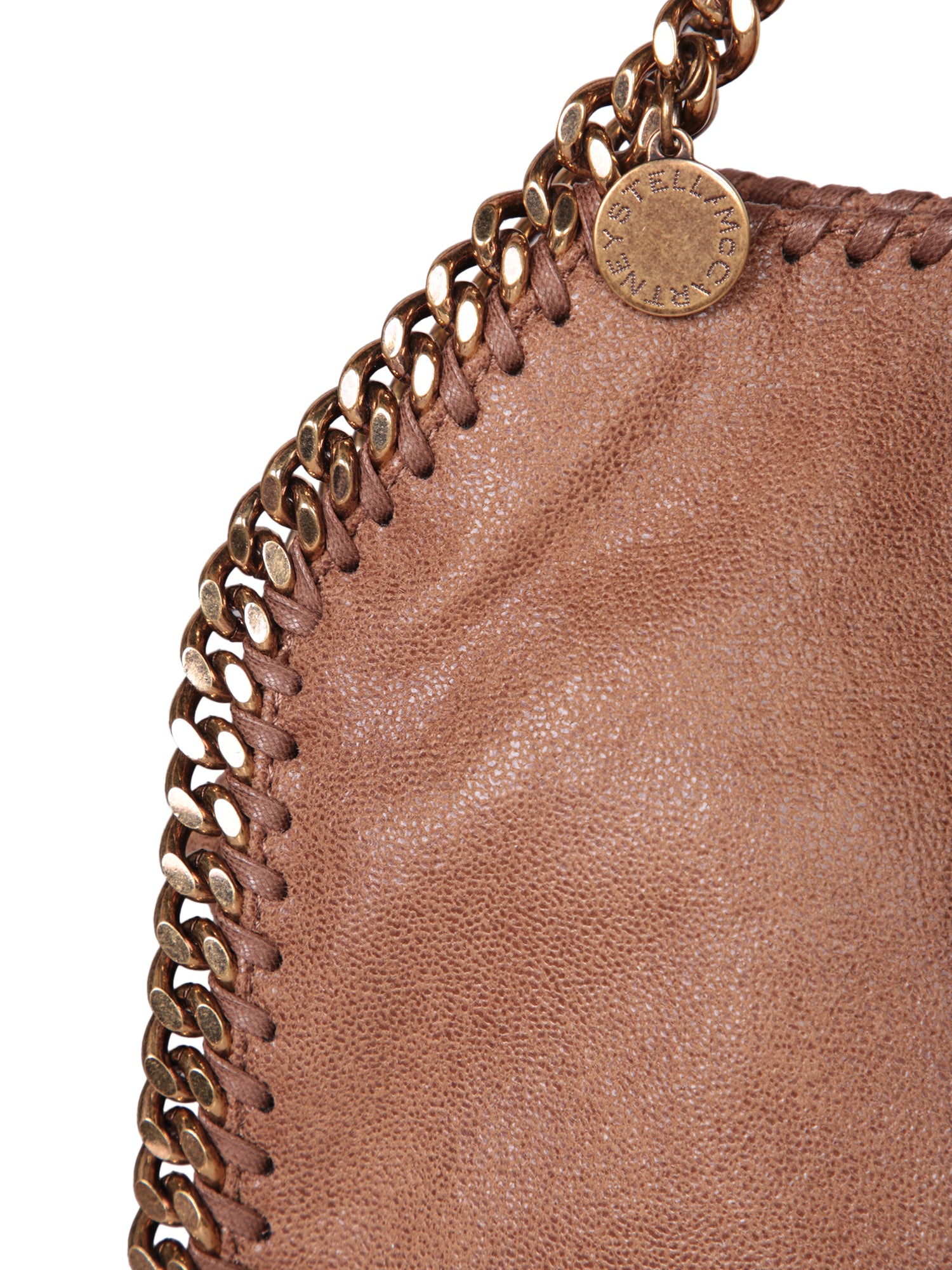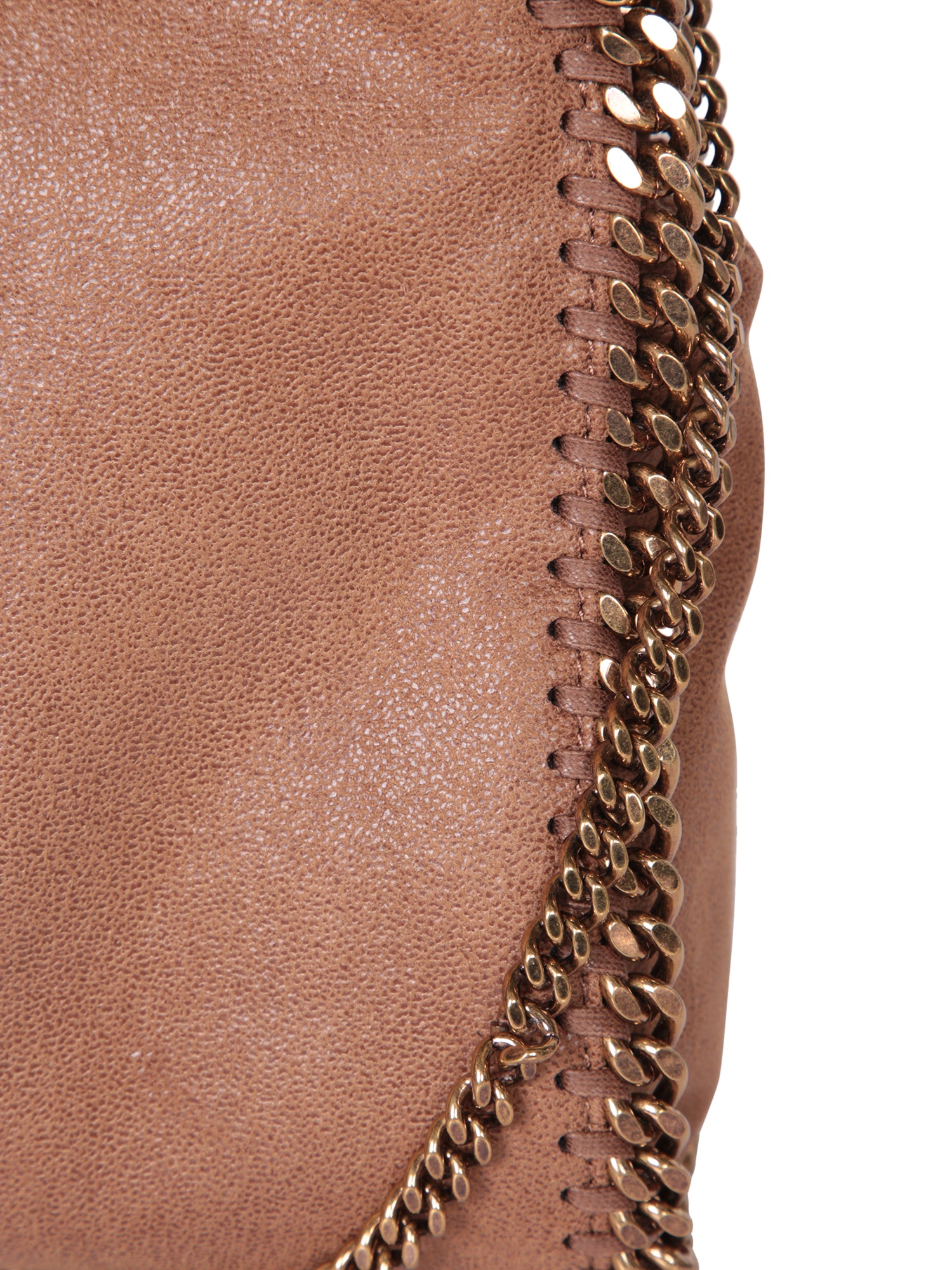 Pecan-colored faux leather bag with antique gold metal details. Magnetic closure, recycled polyester lining.