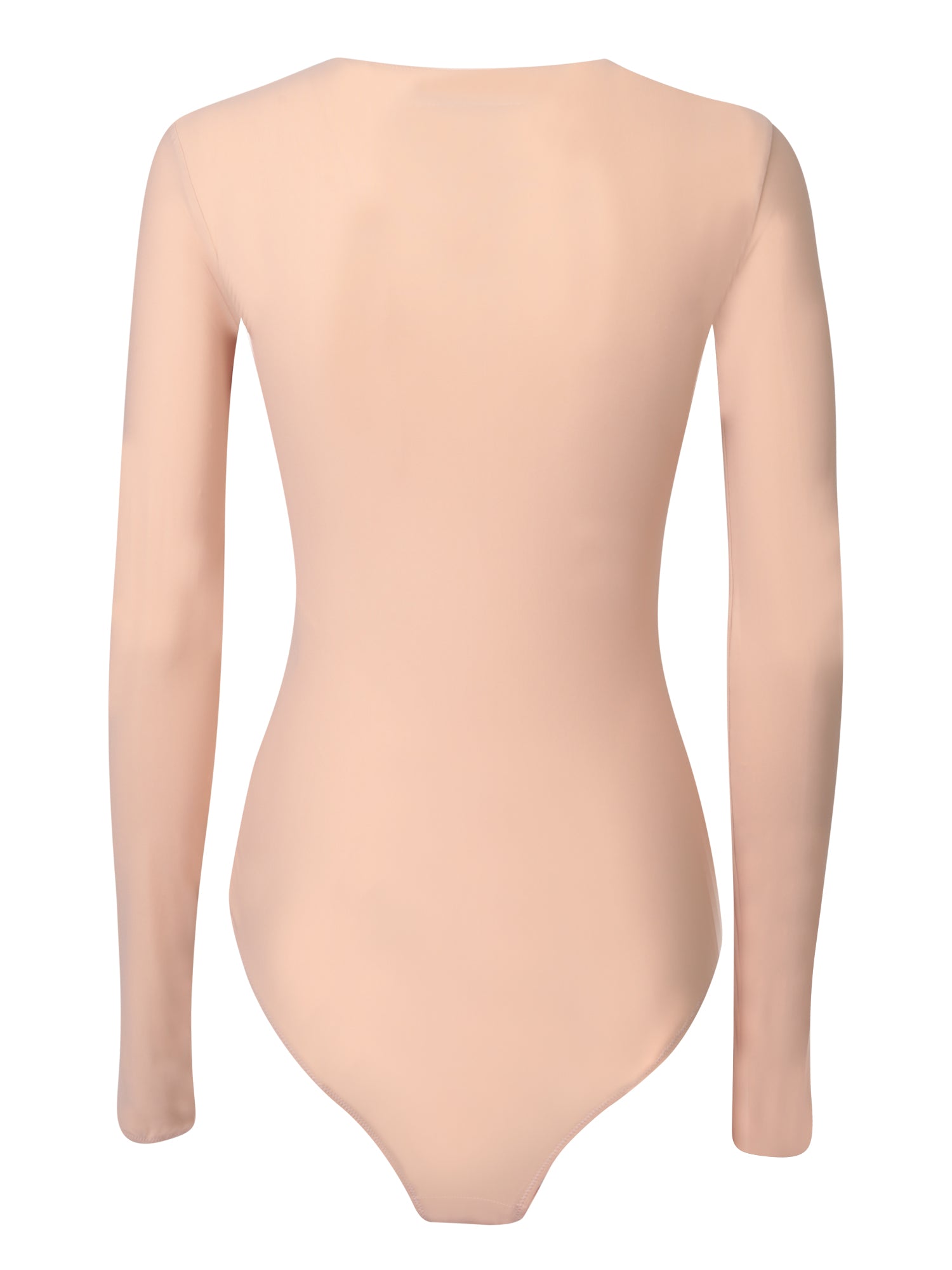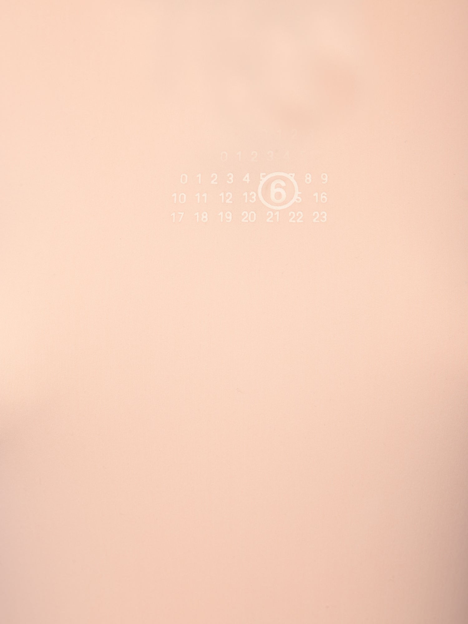 Lycra jersey peach bodysuit by MM6 Maison Margiela features the brand's iconic number graphic