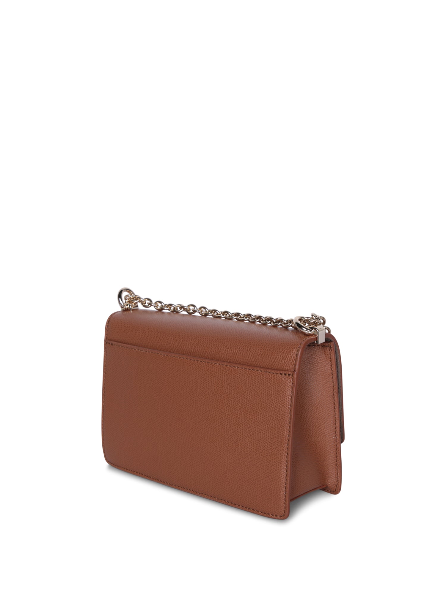The FURLA 1927 bag in cognac shade - Minimalist design with metal logo detail, spacious interior, versatility for any occasion.