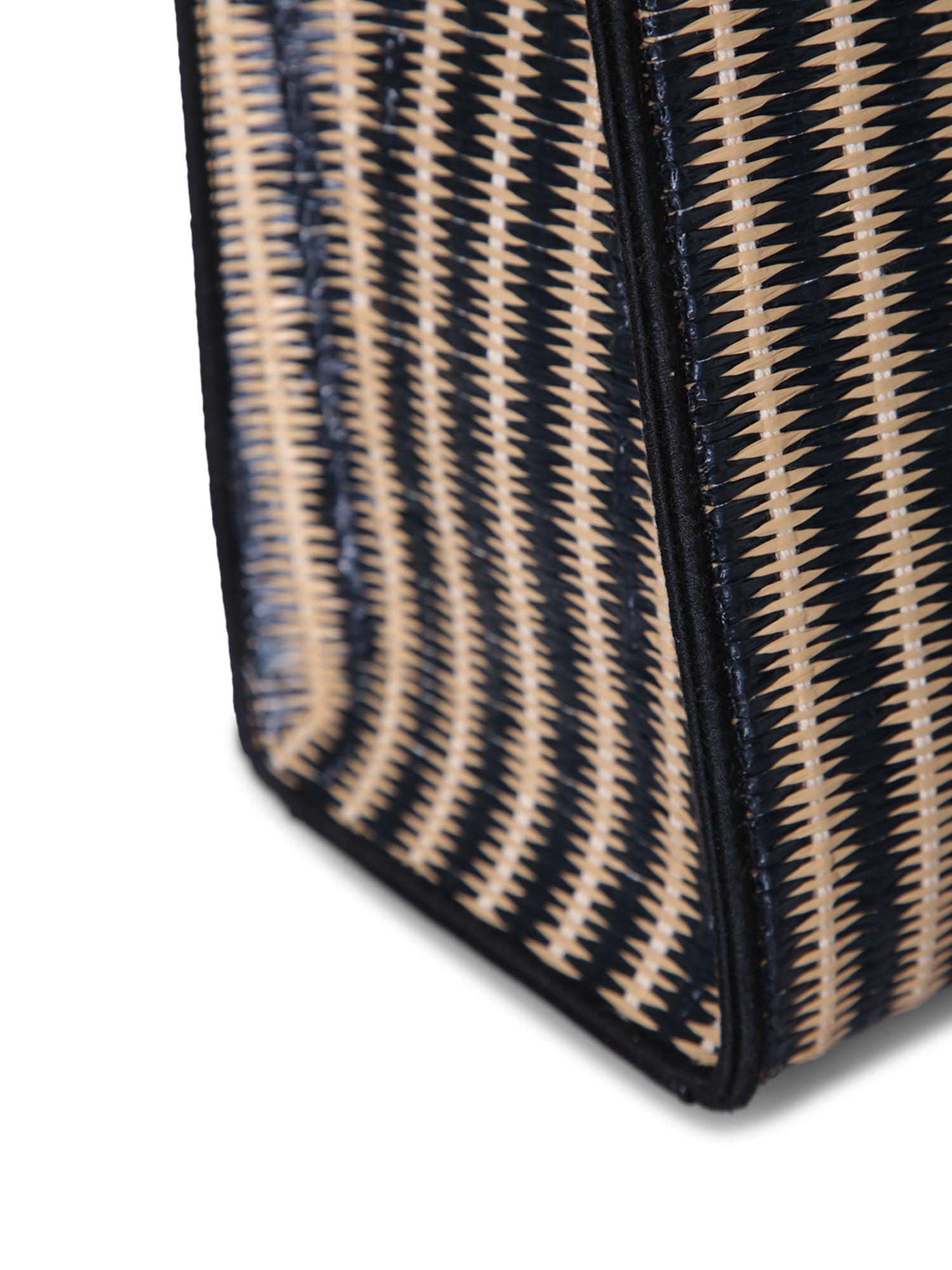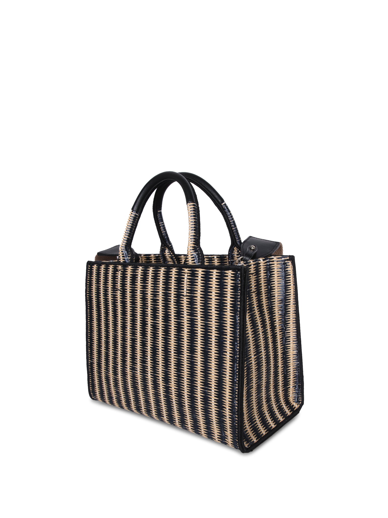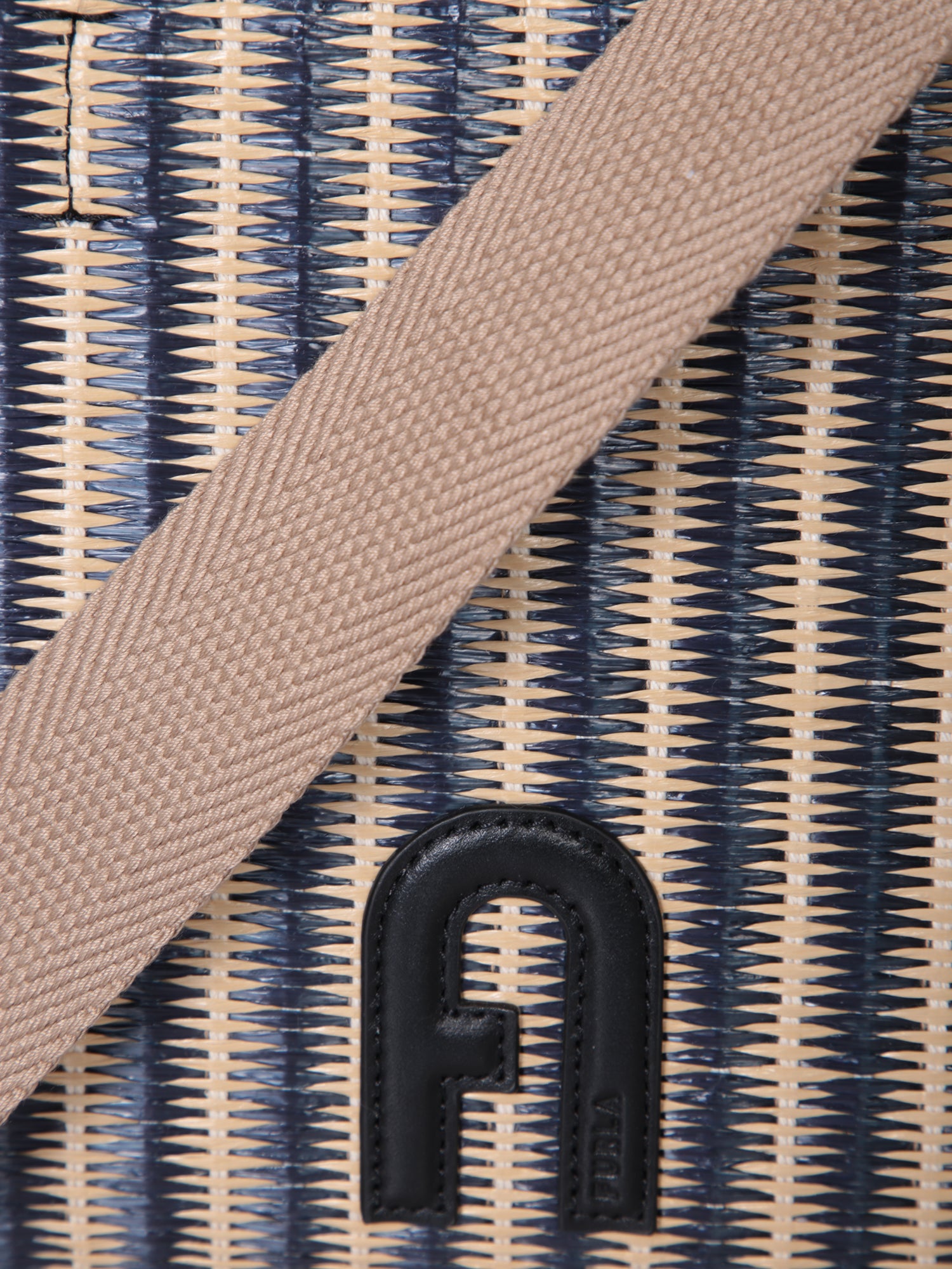 An essential accessory that exudes urban elegance; this FURLA bag crafted with a weave of raffia and black leather merges practicality with sophisticated style.