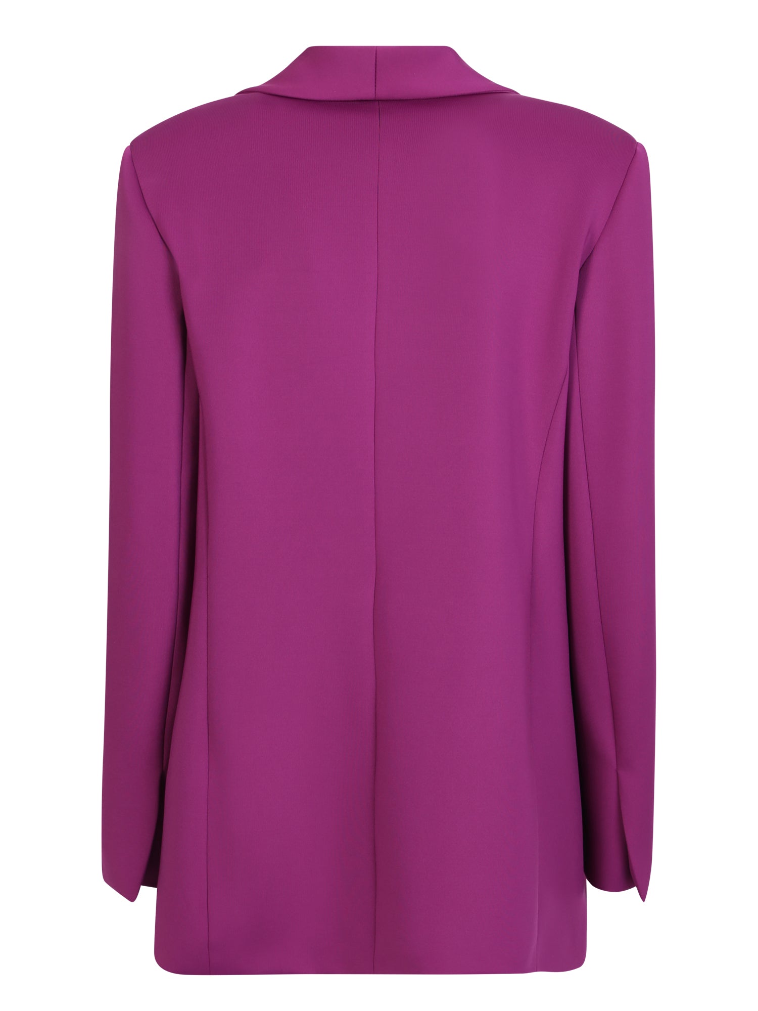 Blanca Vita's elegant style is evident in this purple blazer. Designed with padded shoulders, the open-front silhouette is designed with shawl lapels