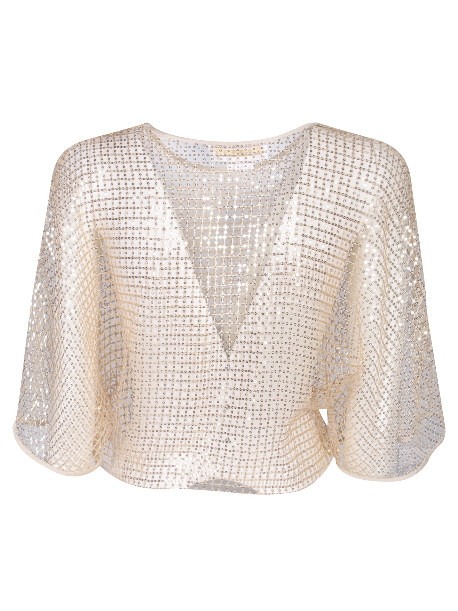This GENNY T-shirt features a dazzling array of gold sequins on transparent mesh for a sophisticated and glamorous look.