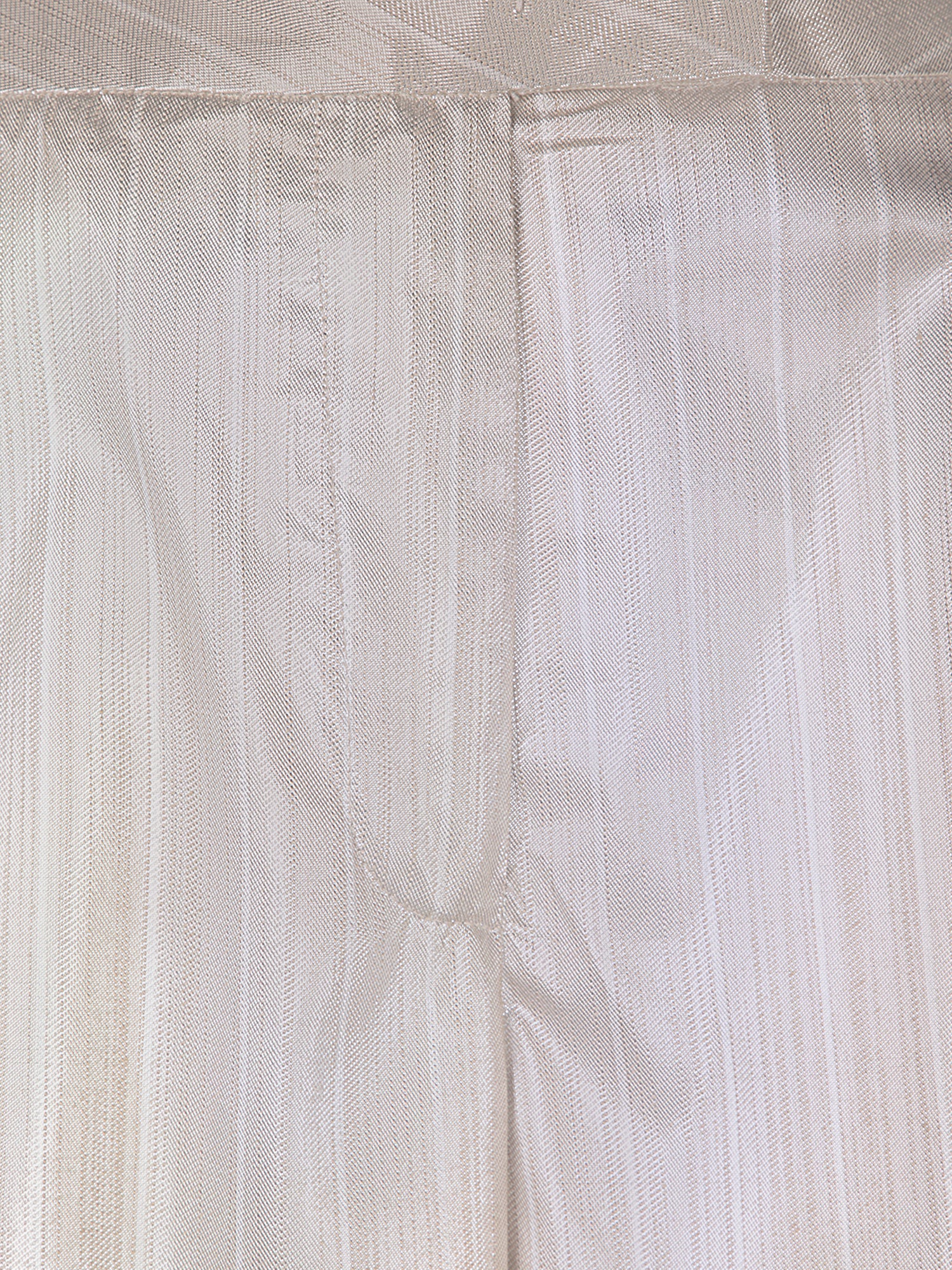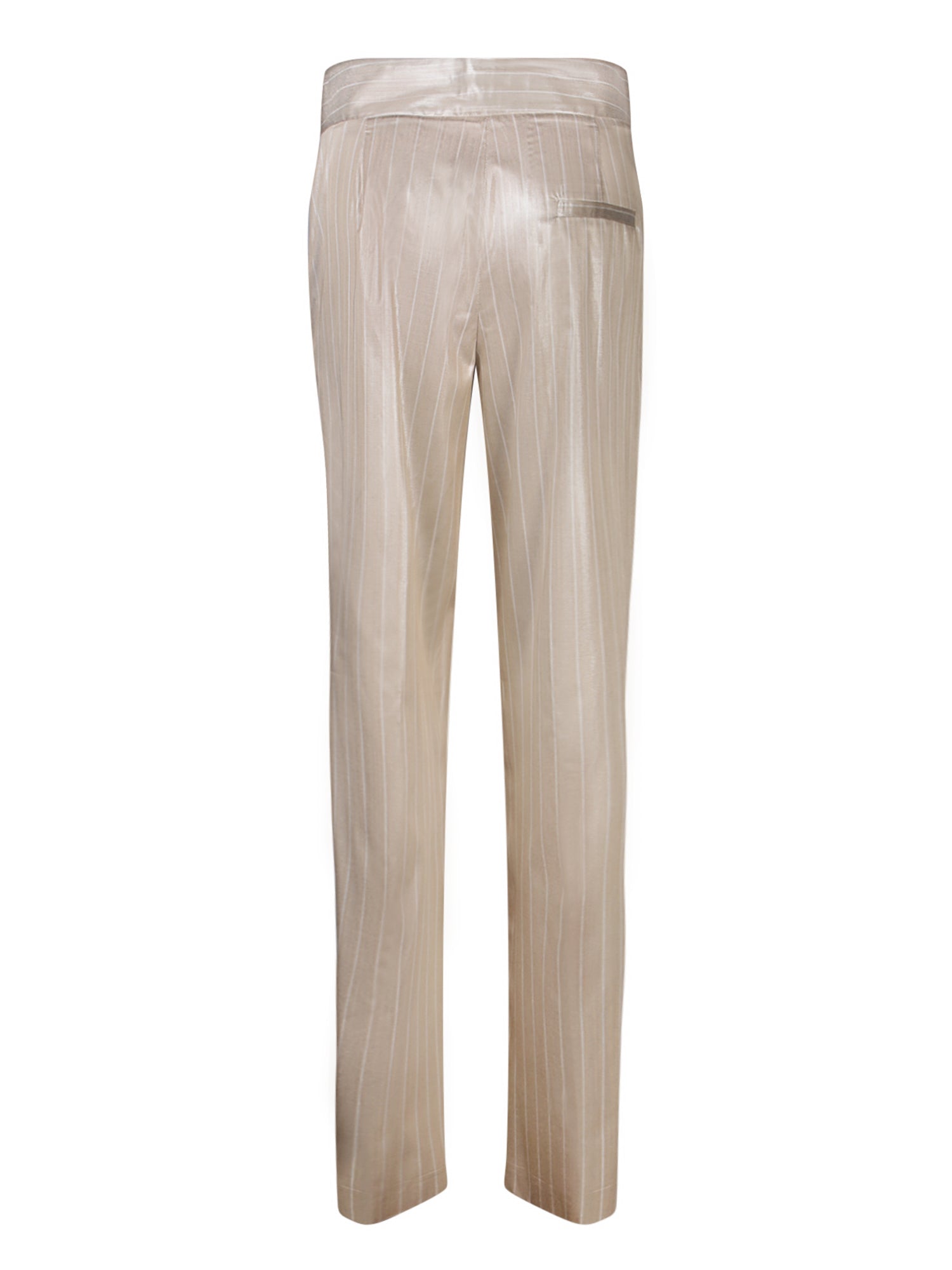 Timeless elegance: satin pinstripe trousers in sand hue, tailored cut, clean and sophisticated silhouette.