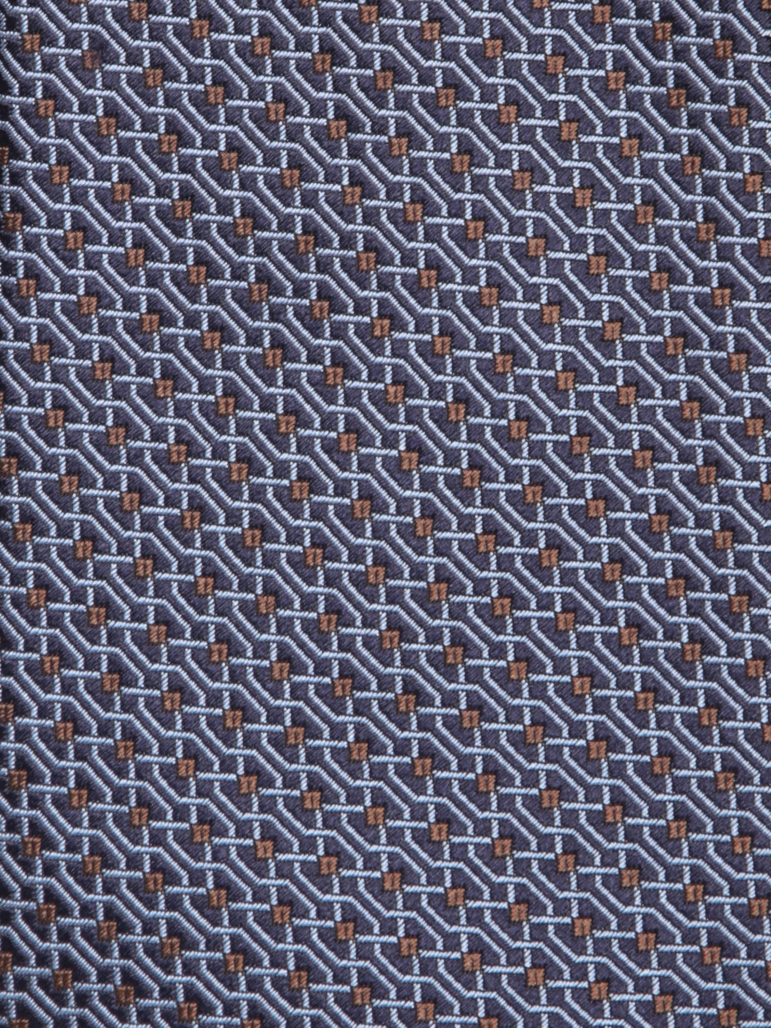 Silk tie with geometric design. 8 cm width. High-quality finishing.